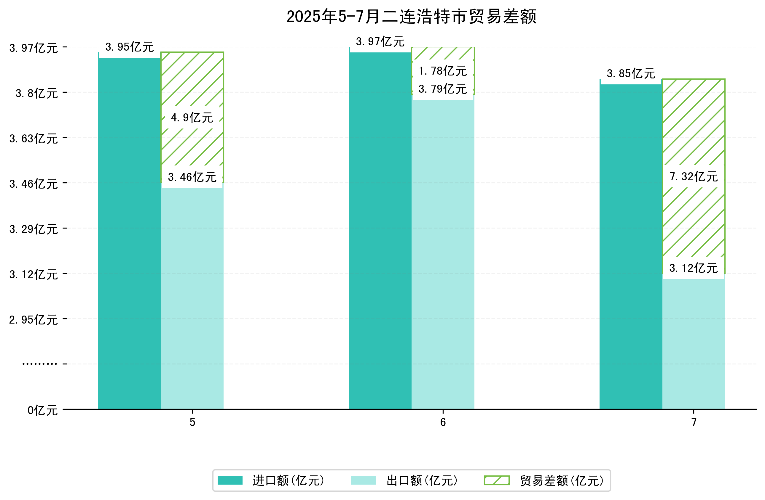2025年7月二连浩特市进出口总额及进出口差额统计分析