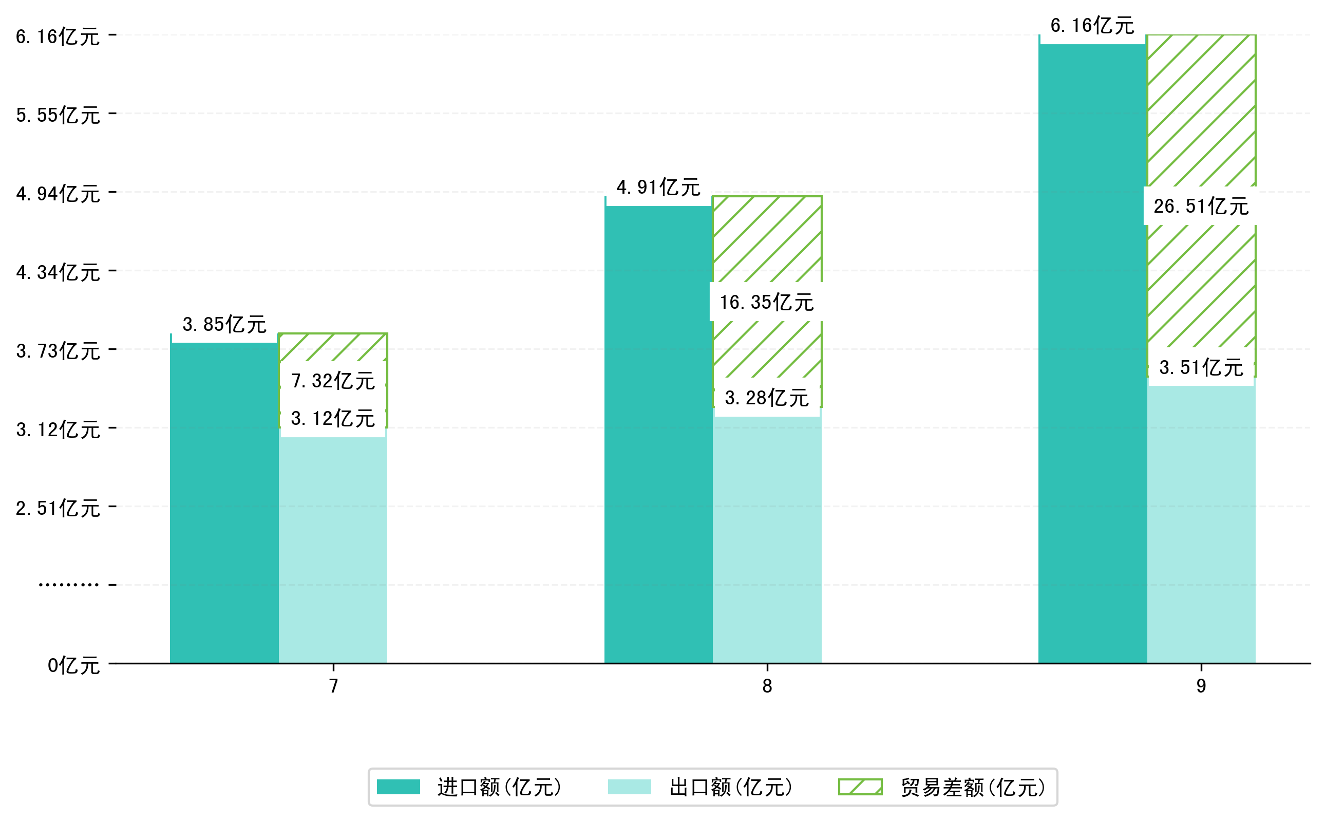 以人民币计,2025年9月二连浩特市贸易差额为2,6514,9866万元(贸易逆差),相比上月减少了1,0168,8095万元,即1422,3316万美元;相比上年同期减少了1,9933,9771万元,同比减少302.9%。