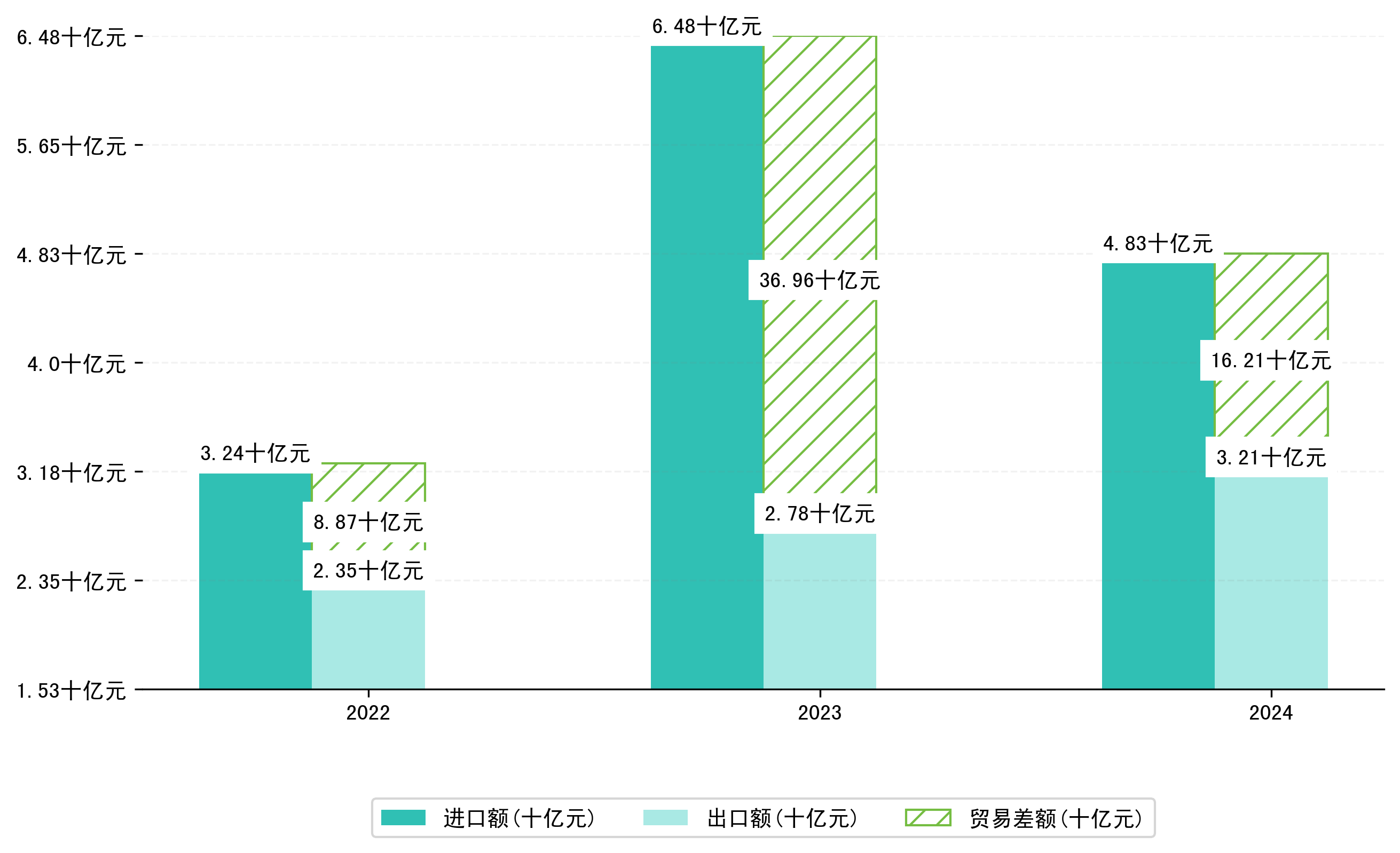 以美元计,2024年1-10月二连浩特市贸易差额为2,2804,7630万美元(贸易逆差),相比上年同期增加了3,0514,3265万美元,同比增加-57.23%。