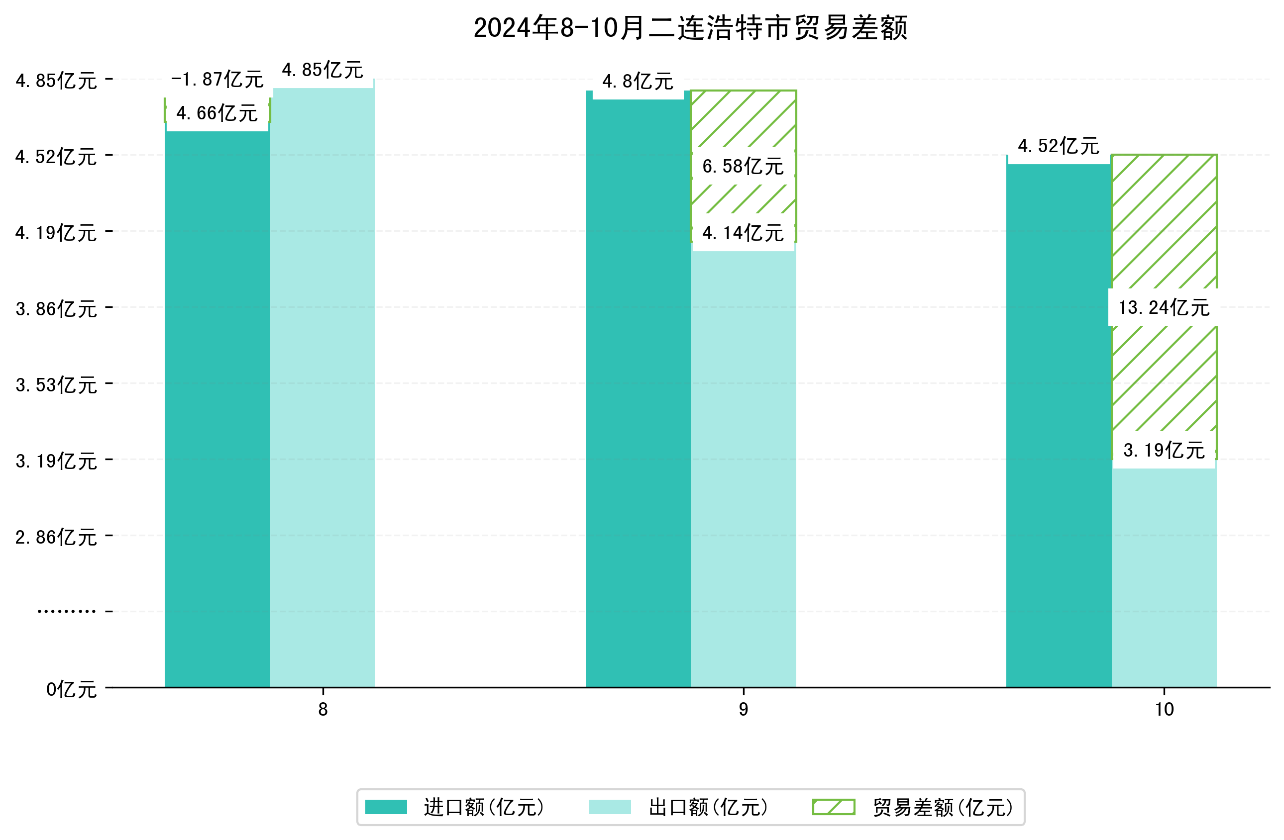 (图四:2024年8-10月二连浩特市贸易差额)