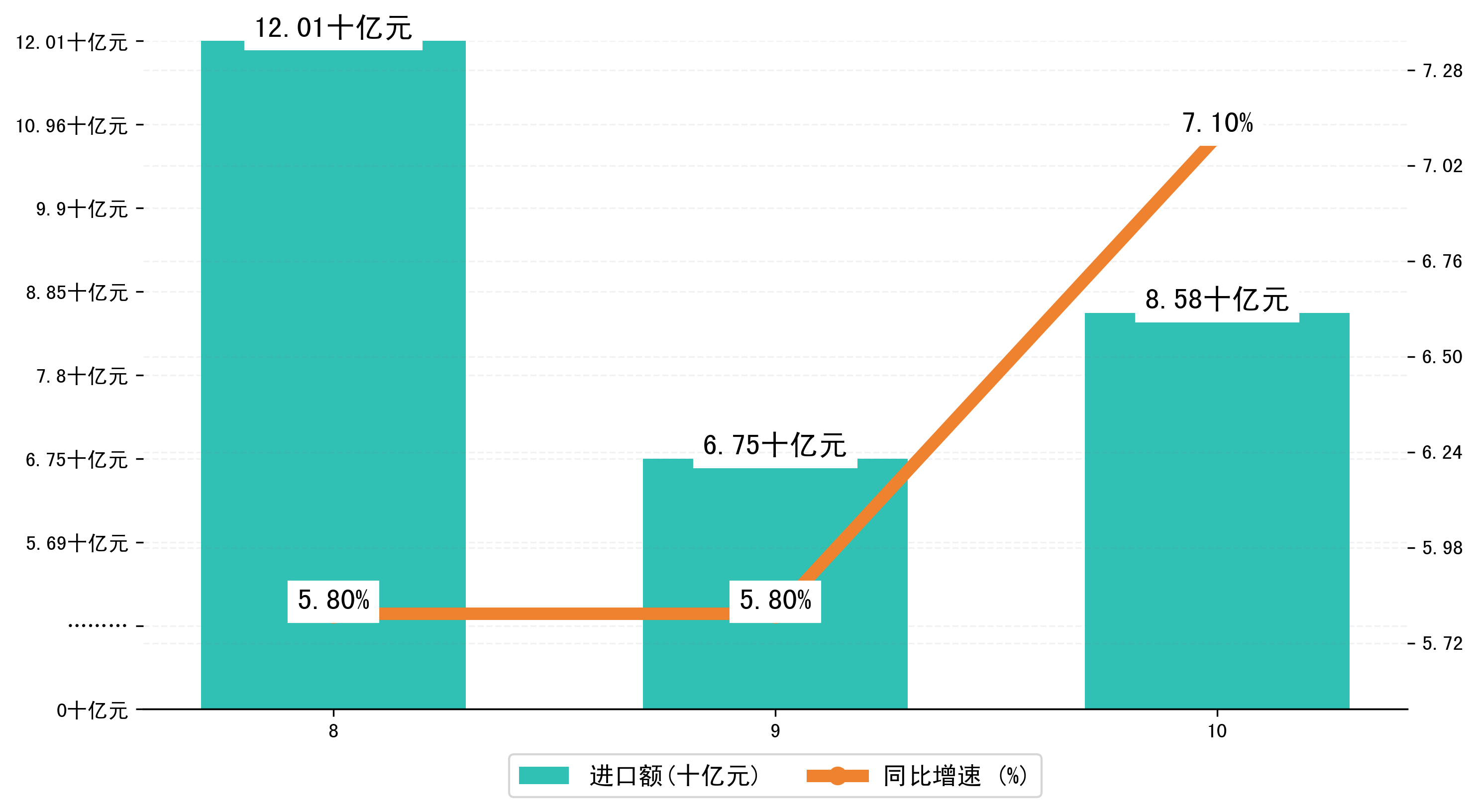 以人民币计,2024年10月防城港市进口额为85,8120.5702万元,相比上月增加了18,3531.7497万元;相比上年同期增加了14,3296.7854万元,同比增加了7.10%。