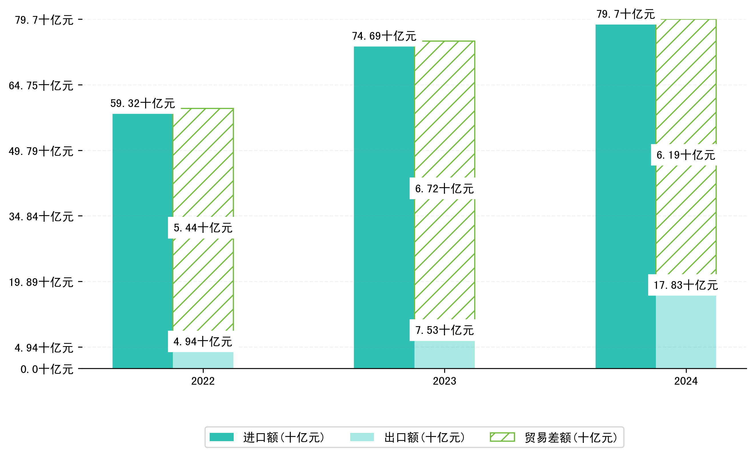 以人民币计,2024年10月防城港市贸易差额为65,0821,0866万元(贸易逆差),相比上月减少了27,5817,4846万元,即3,8978,1726万美元;相比上年同期减少了1,4948,5313万元,同比减少2.35%。
