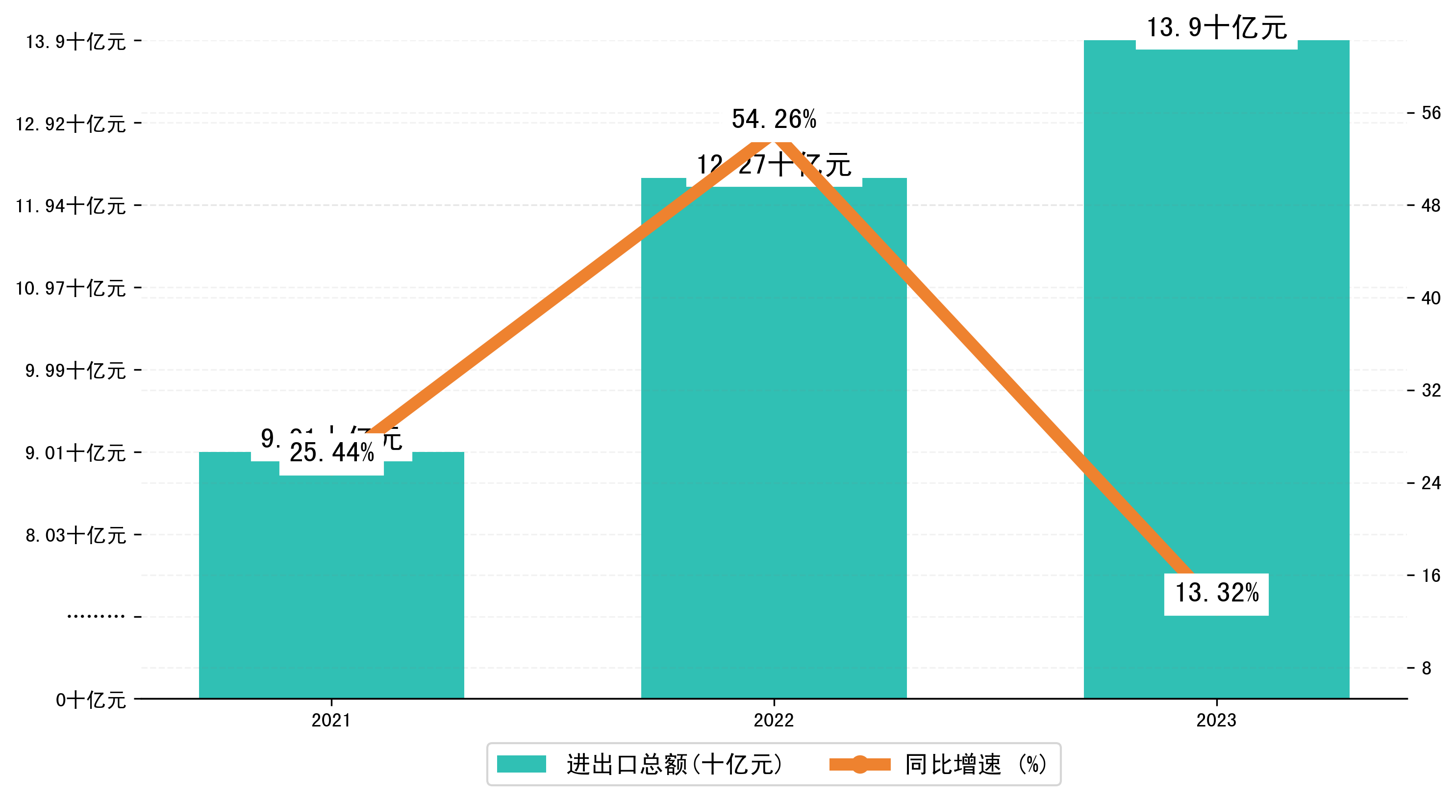 以人民币计,2023年1-2月防城港市进出口总额为138,9984.8697万元,相比上年同期增加了16,3331.0171万元,同比增加了10.10%。