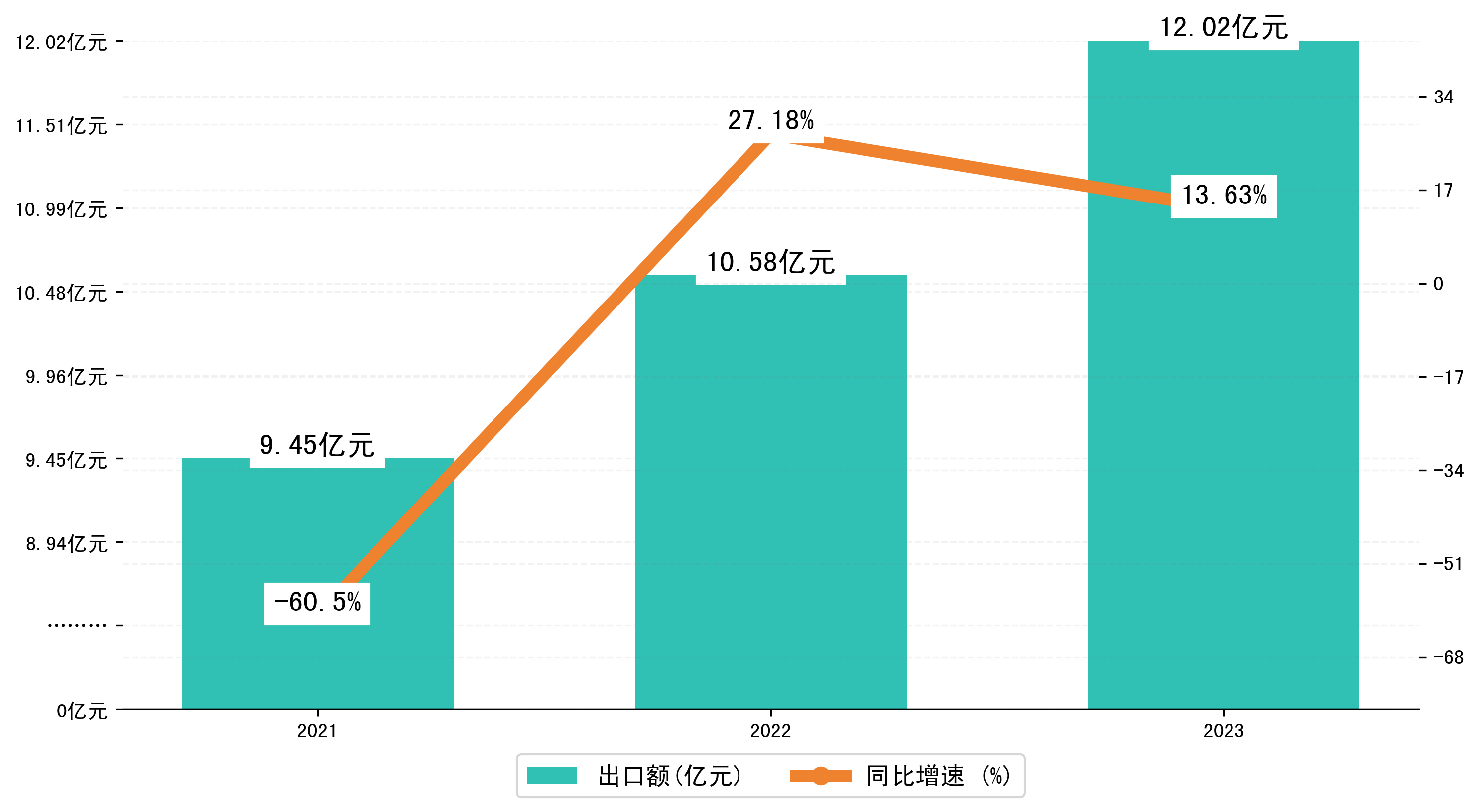 以人民币计,2023年1-2月防城港市出口额为12,0195.2606万元,相比上年同期增加了1,4417.3913万元,同比增加了13.60%。