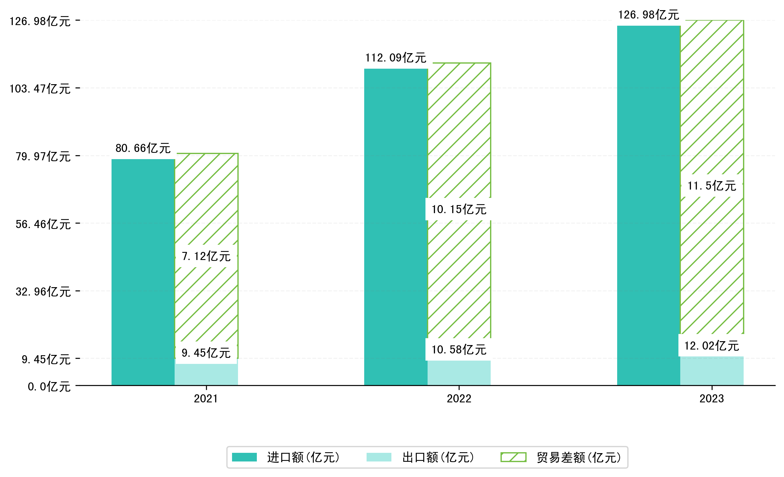以美元计,2023年2月防城港市贸易差额为7,3799,2142万美元(贸易逆差),相比上月增加了1,8888,0625万美元;相比上年同期减少了9395,6962万美元,同比减少14.59%。