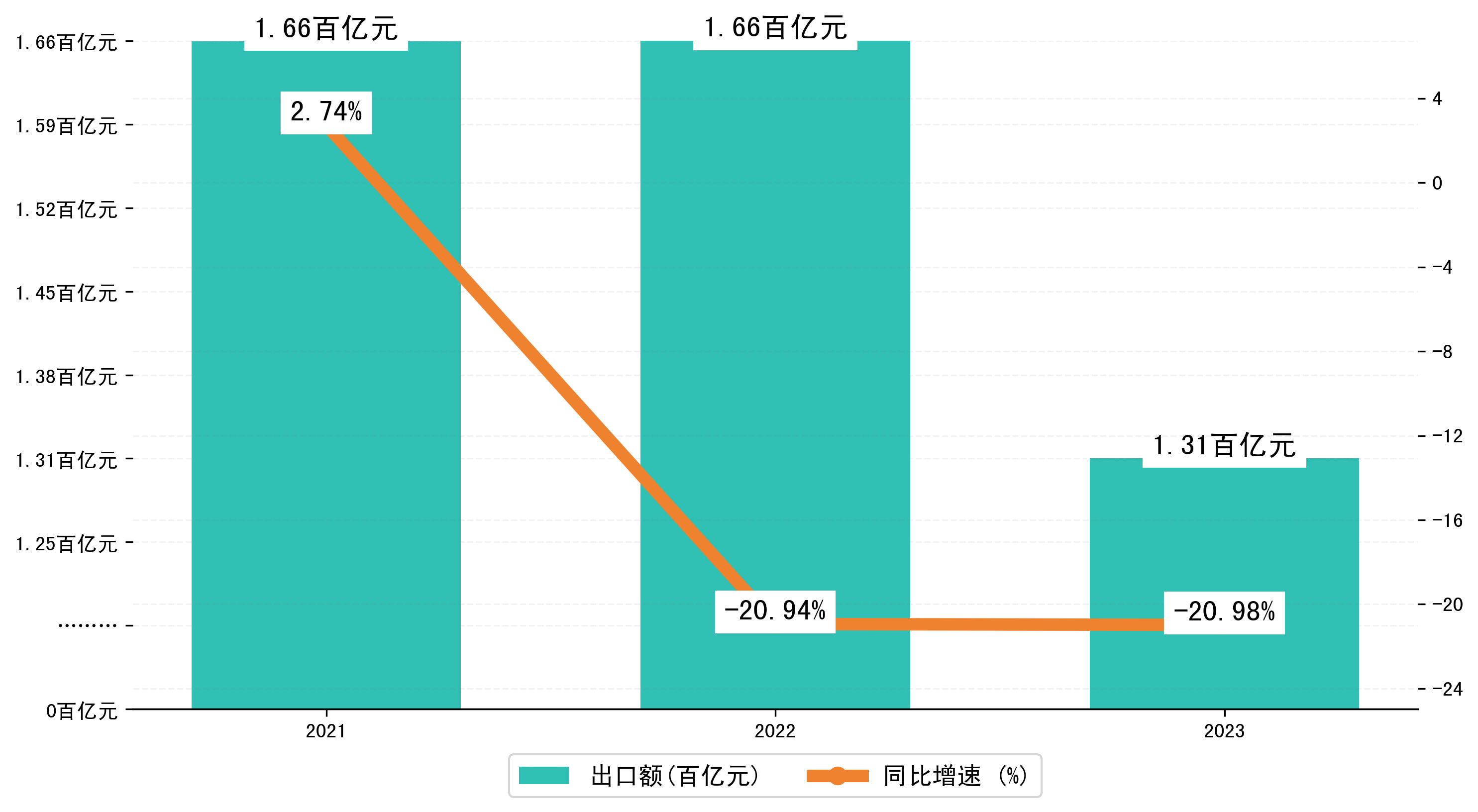 以人民币计,2023年1-11月阳江市出口额为131,4879.6606万元,相比上年同期减少了34,9060.6383万元,同比减少了-20.70%。