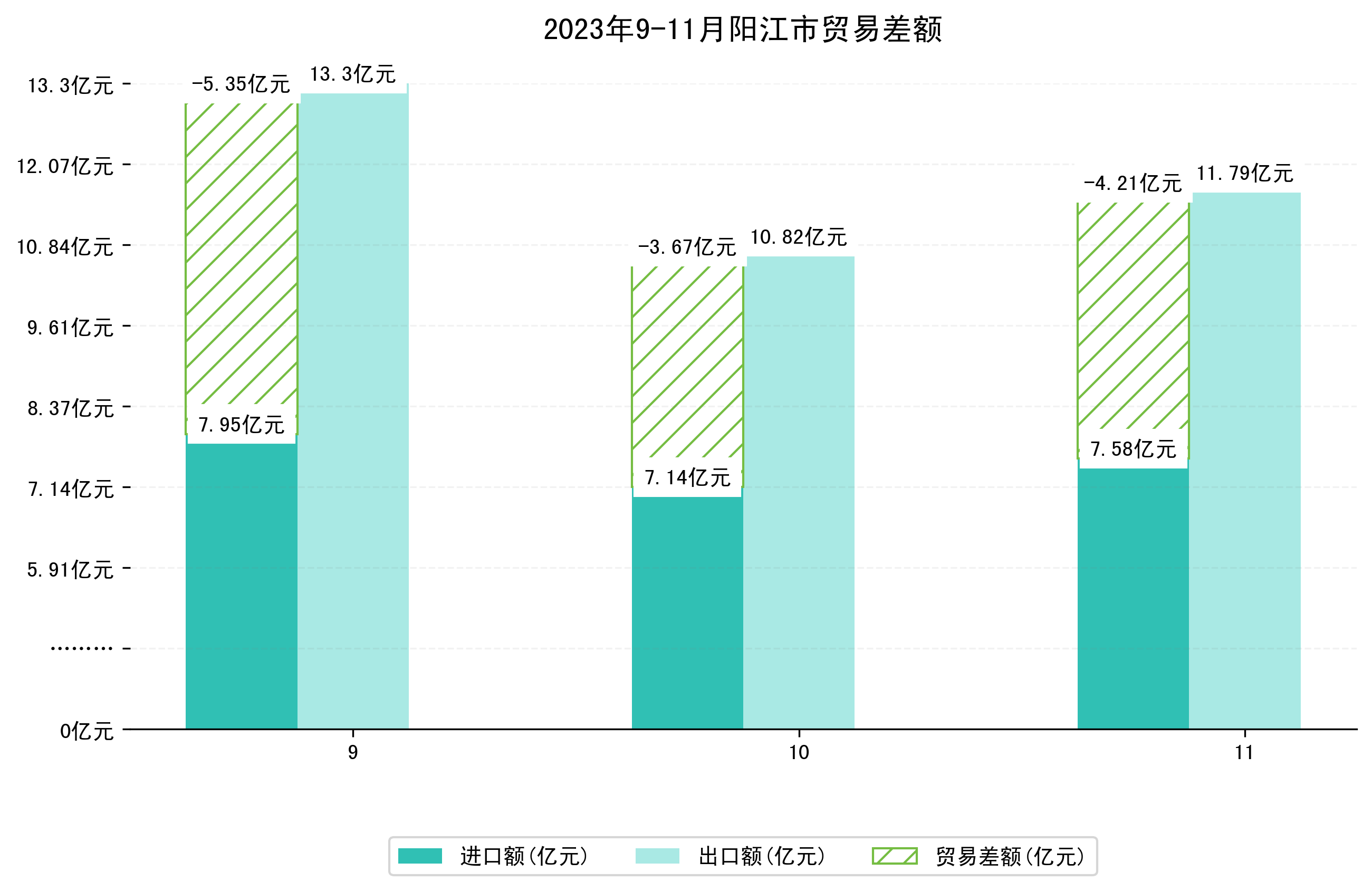 2023年11月阳江市进出口总额及进出口差额统计分析