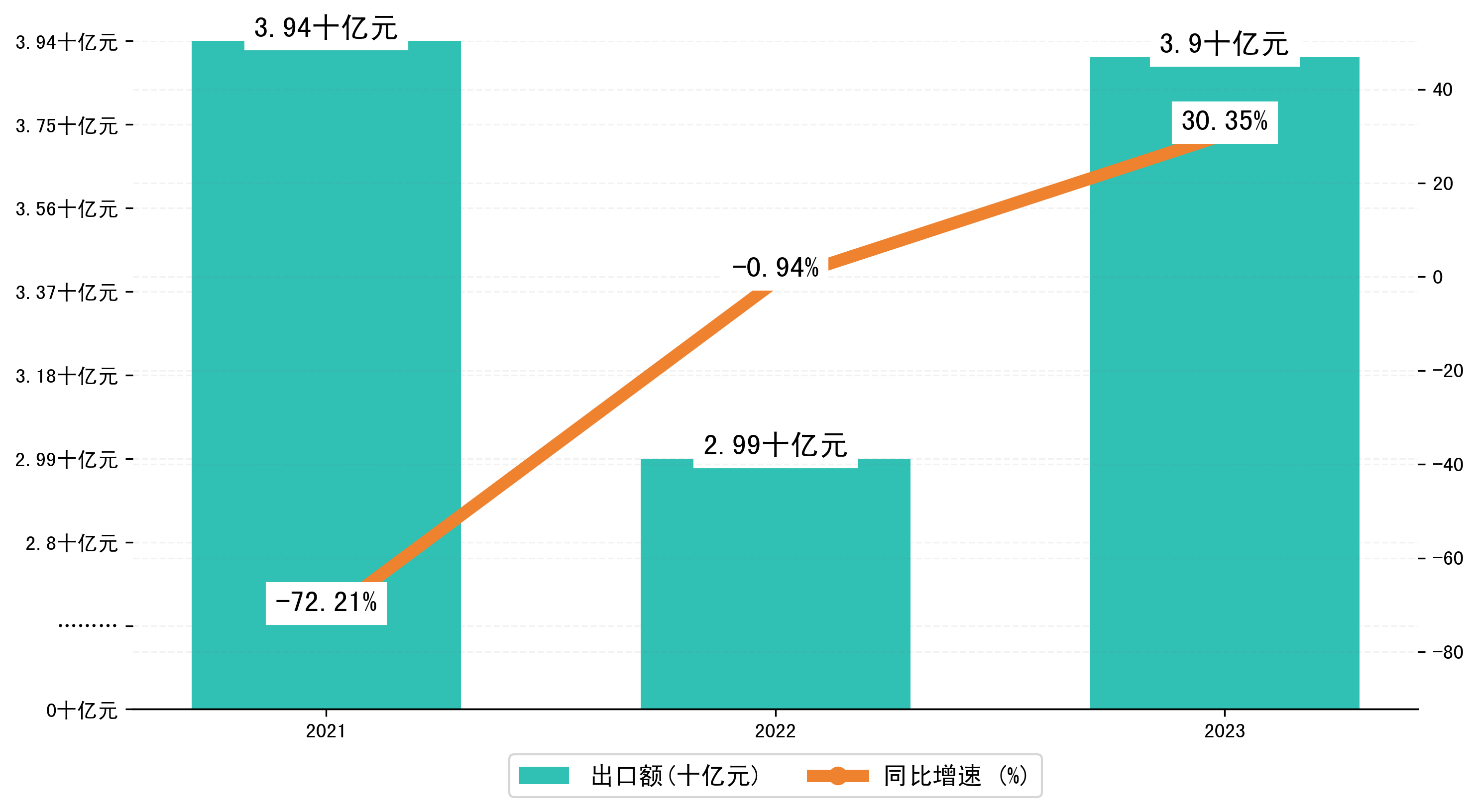 以人民币计,2023年1-6月防城港市出口额为39,0175.6004万元,相比上年同期增加了9,0841.2474万元,同比增加了30.30%。