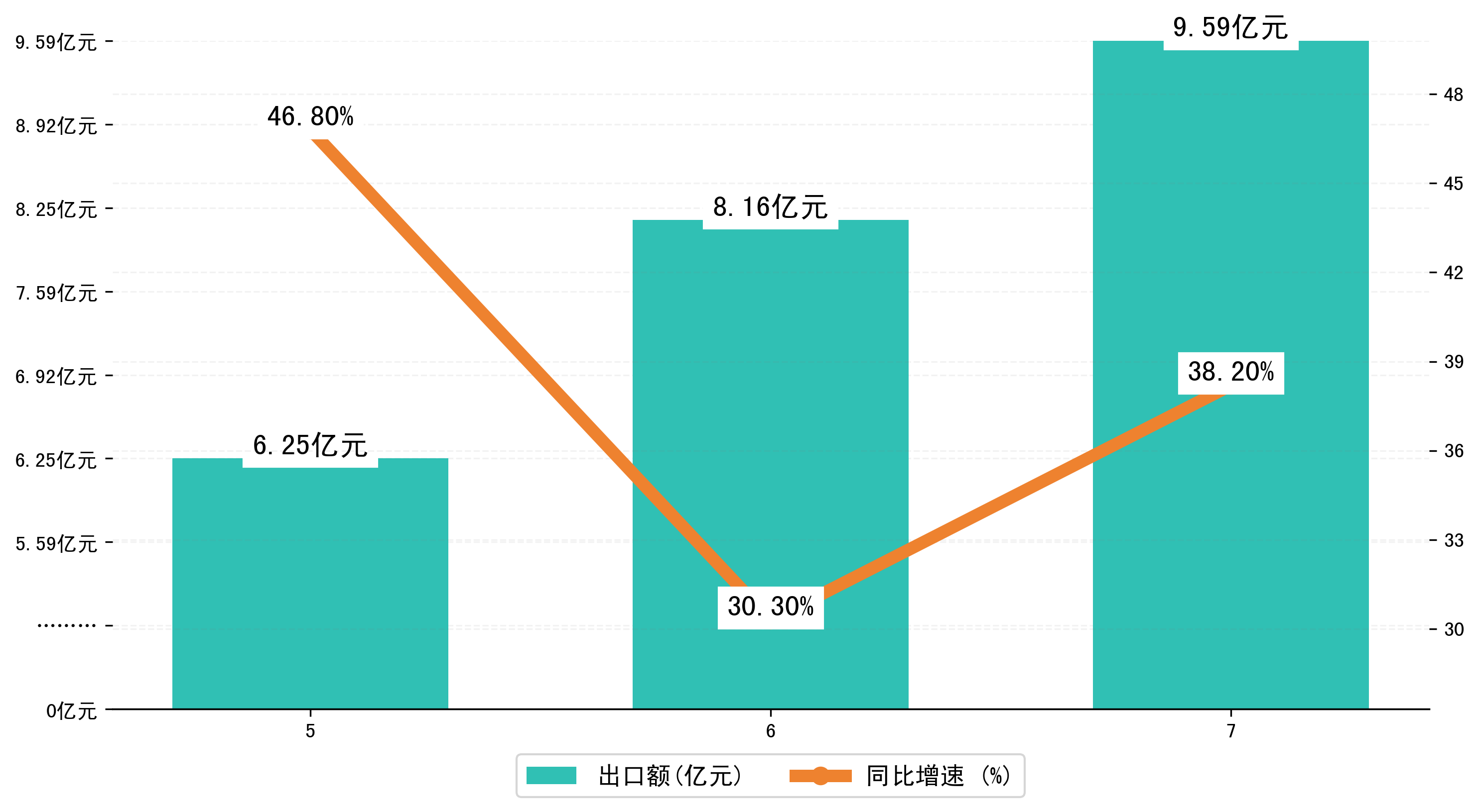 以人民币计,2023年1-7月防城港市出口额为48,6025.7028万元,相比上年同期增加了13,4398.7847万元,同比增加了38.20%。