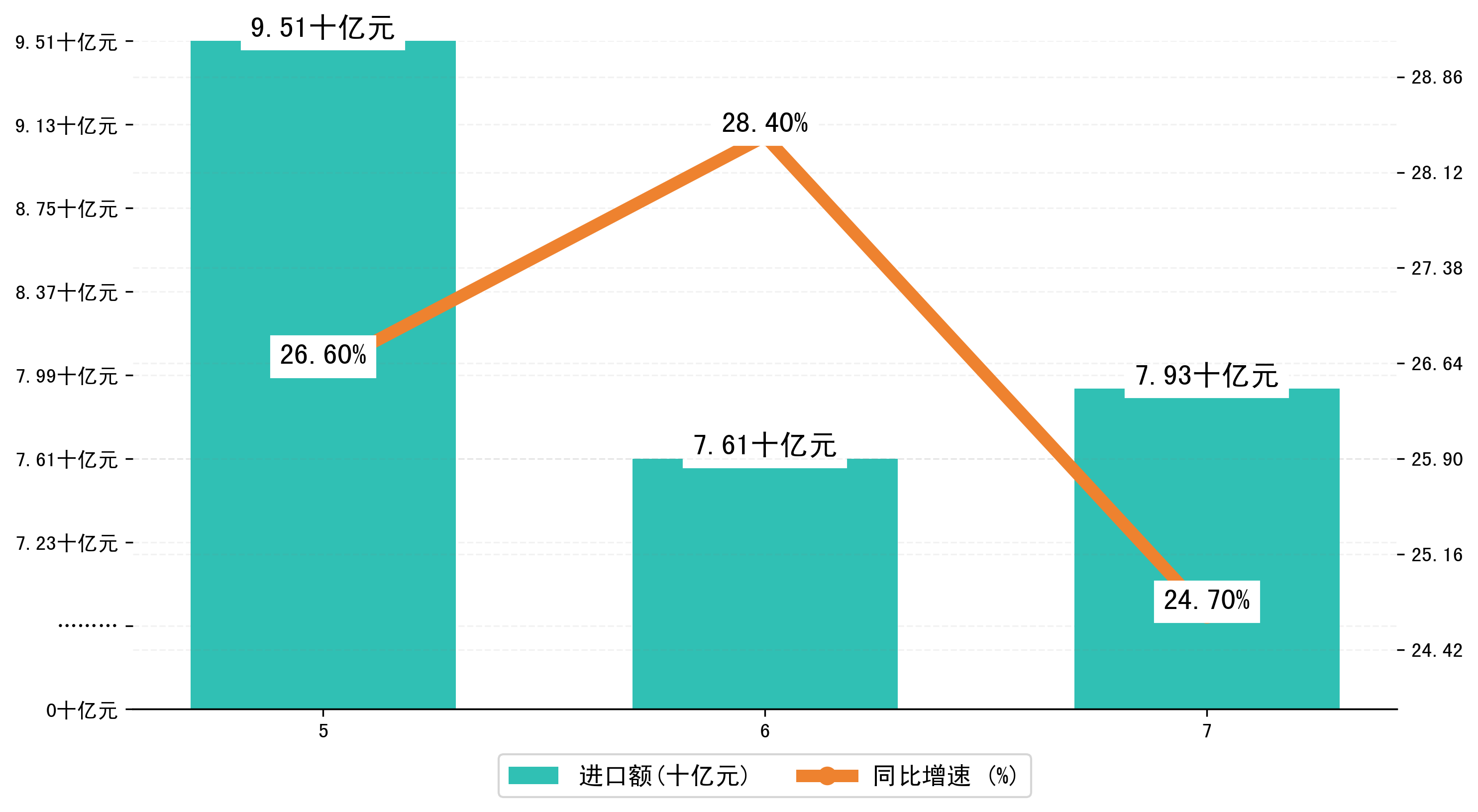以人民币计,2023年7月防城港市进口额为79,2643.6337万元,相比上月增加了3,1831.5414万元;相比上年同期减少了1,5551.8046万元,同比增加了24.70%。