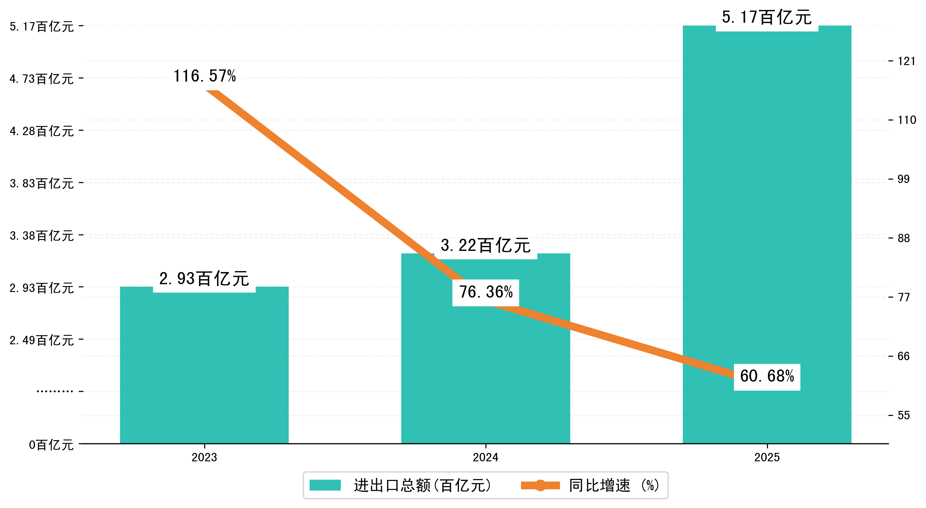 以人民币计,2025年4月防城港市贸易差额为100,6769,4417万元(贸易逆差),相比上月减少了71,5071,1142万元,即9,9764,4911万美元;相比上年同期减少了33,8643,6487万元,同比减少50.69%。