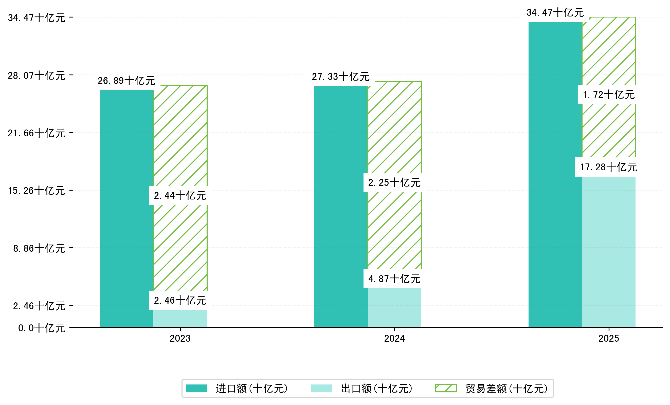 以美元计,2025年1-4月防城港市贸易差额为23,9570,9971万美元(贸易逆差),相比上年同期增加了7,6858,7939万美元,同比增加-24.29%。