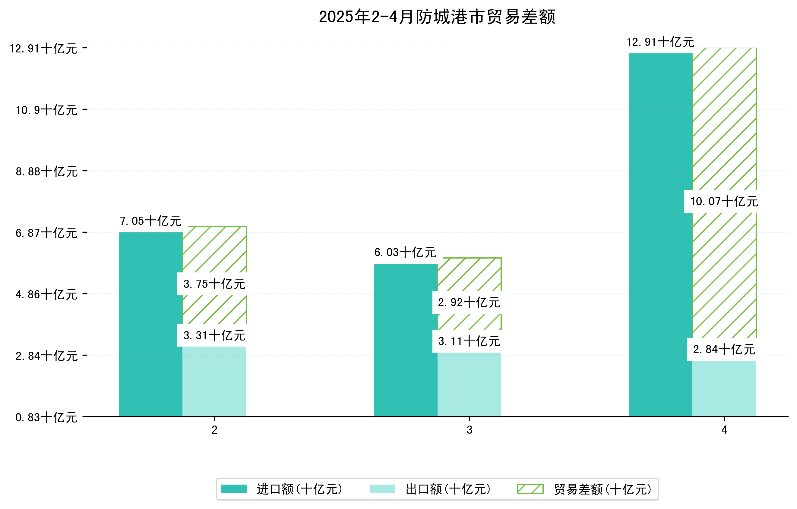 2025年4月防城港市进出口总额及进出口差额统计分析