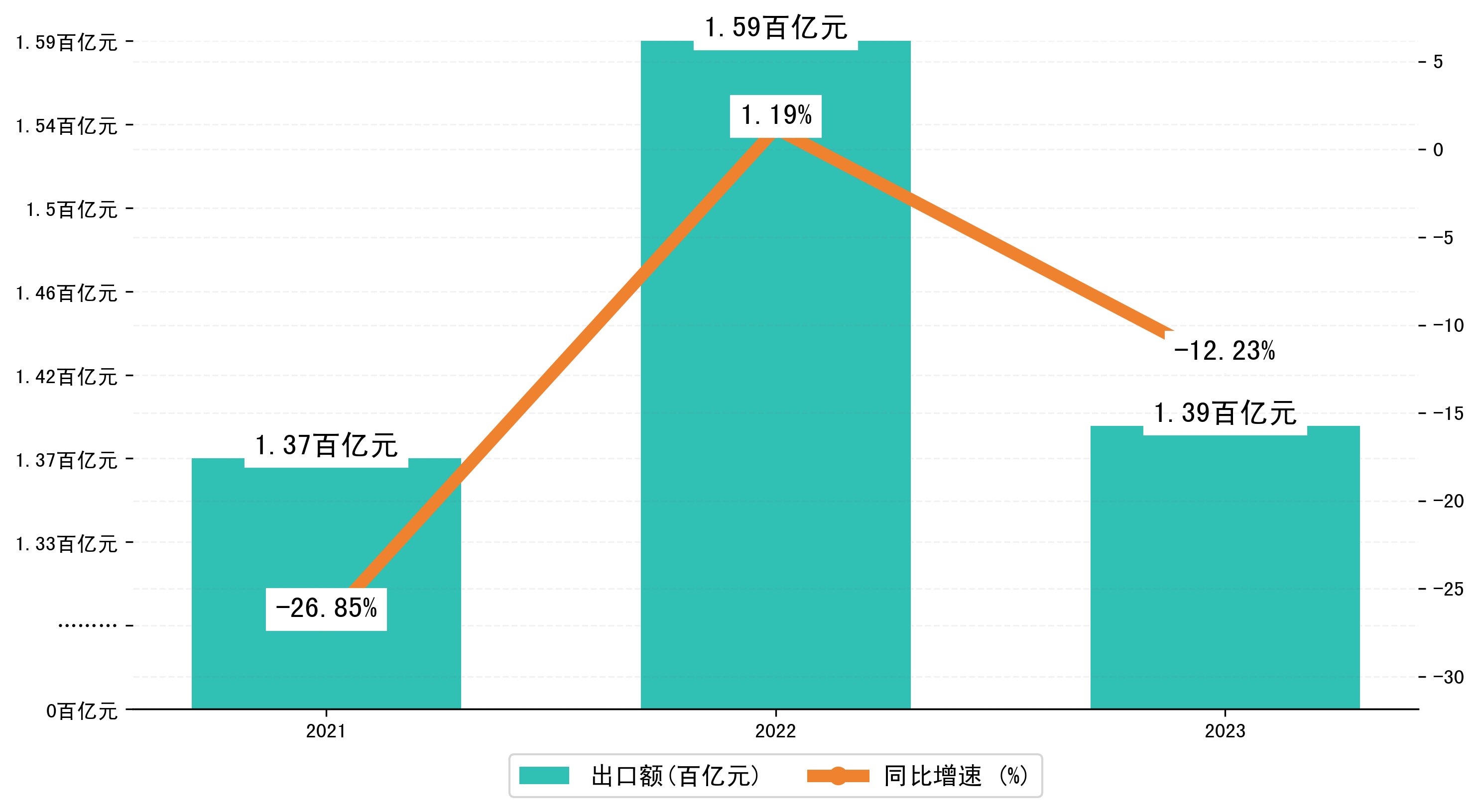 以人民币计,2023年1-7月荆州市出口额为139,1272.4526万元,相比上年同期减少了19,3948.6747万元,同比减少了-12.20%。