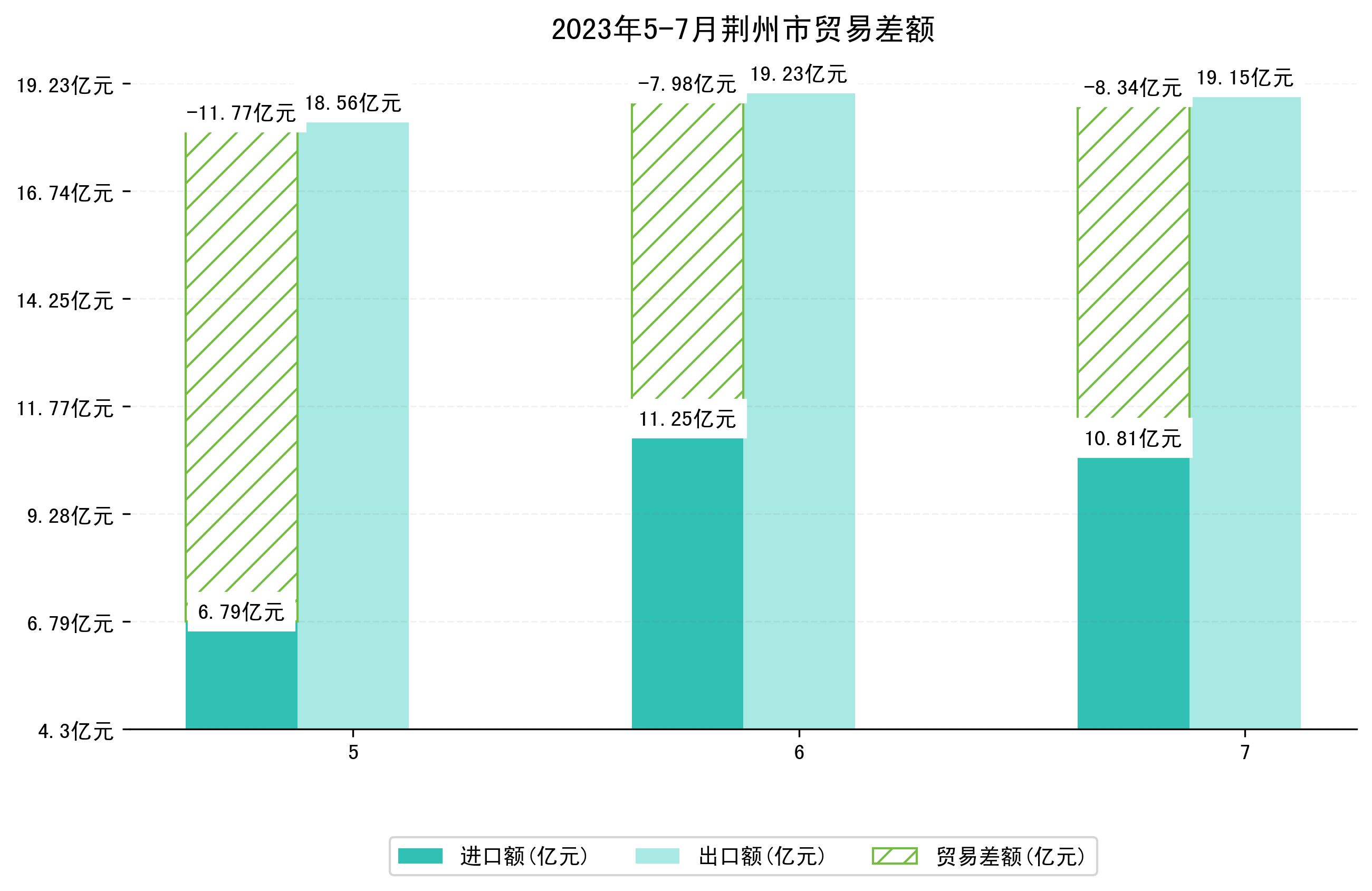 2023年7月荆州市进出口总额及进出口差额统计分析