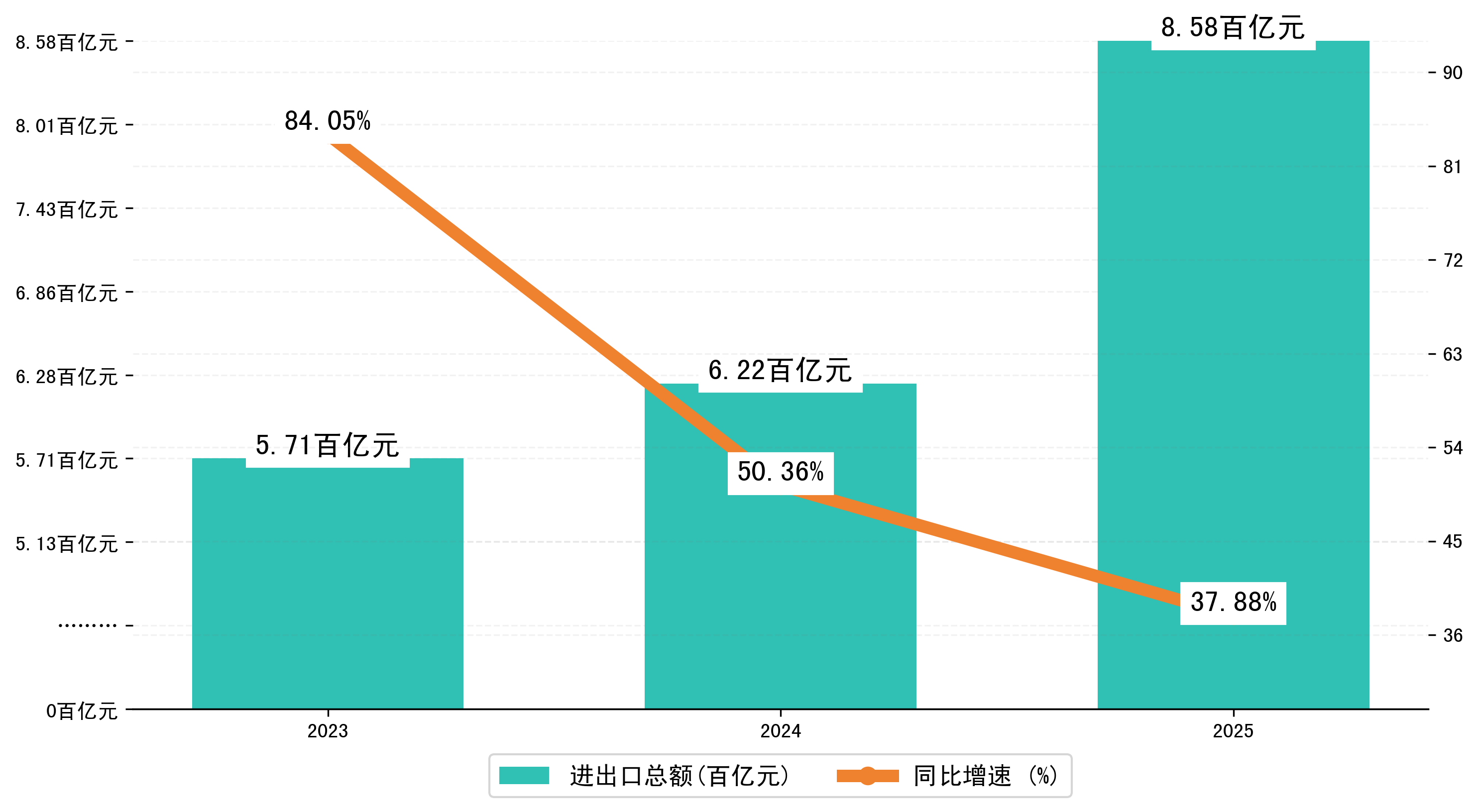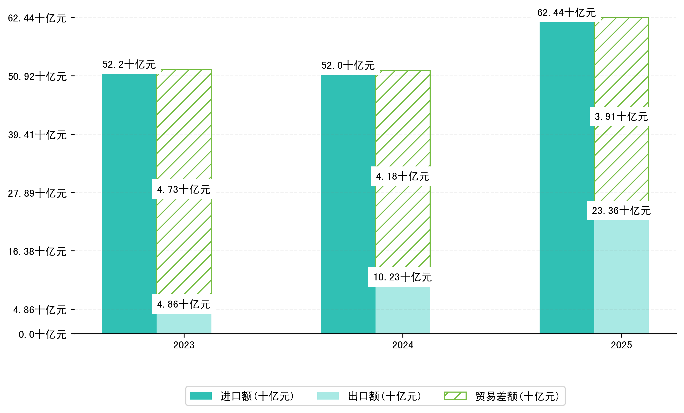 以人民币计,2025年7月防城港市贸易差额为68,7887,3608万元(贸易逆差),相比上月增加了4,8005,8742万元,即6501,0985万美元;相比上年同期减少了16,1446,2128万元,同比减少30.67%。