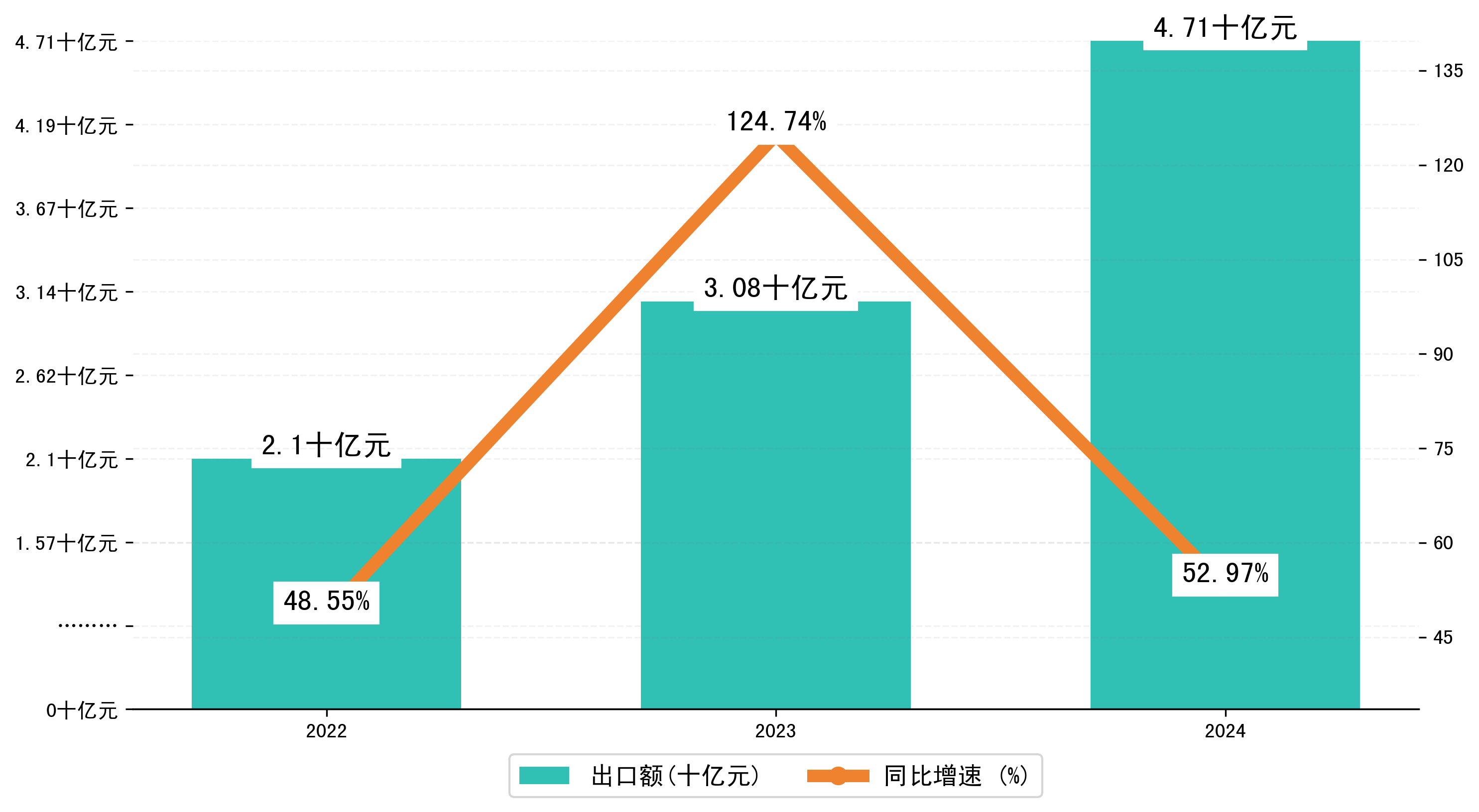 以人民币计,2024年1-5月防城港市出口额为47,1486.774万元,相比上年同期增加了16,3260.1593万元,同比增加了52.80%。