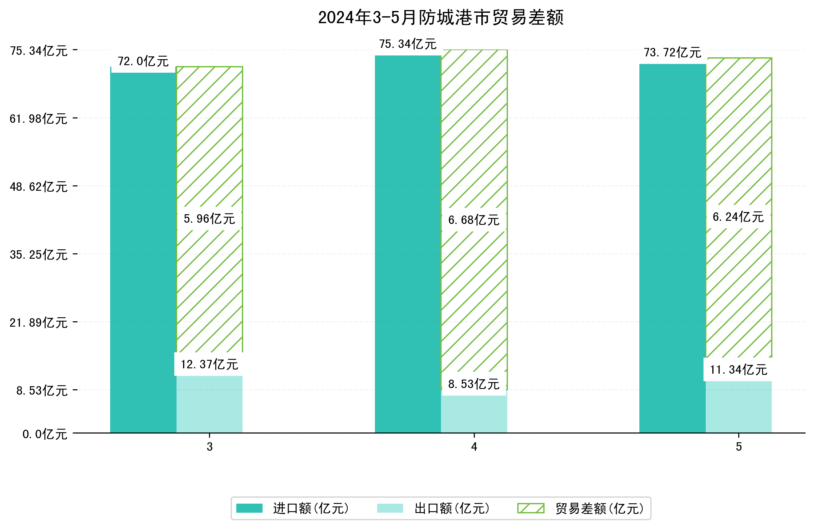(图一:2024年3-5月防城港市进出口总额)