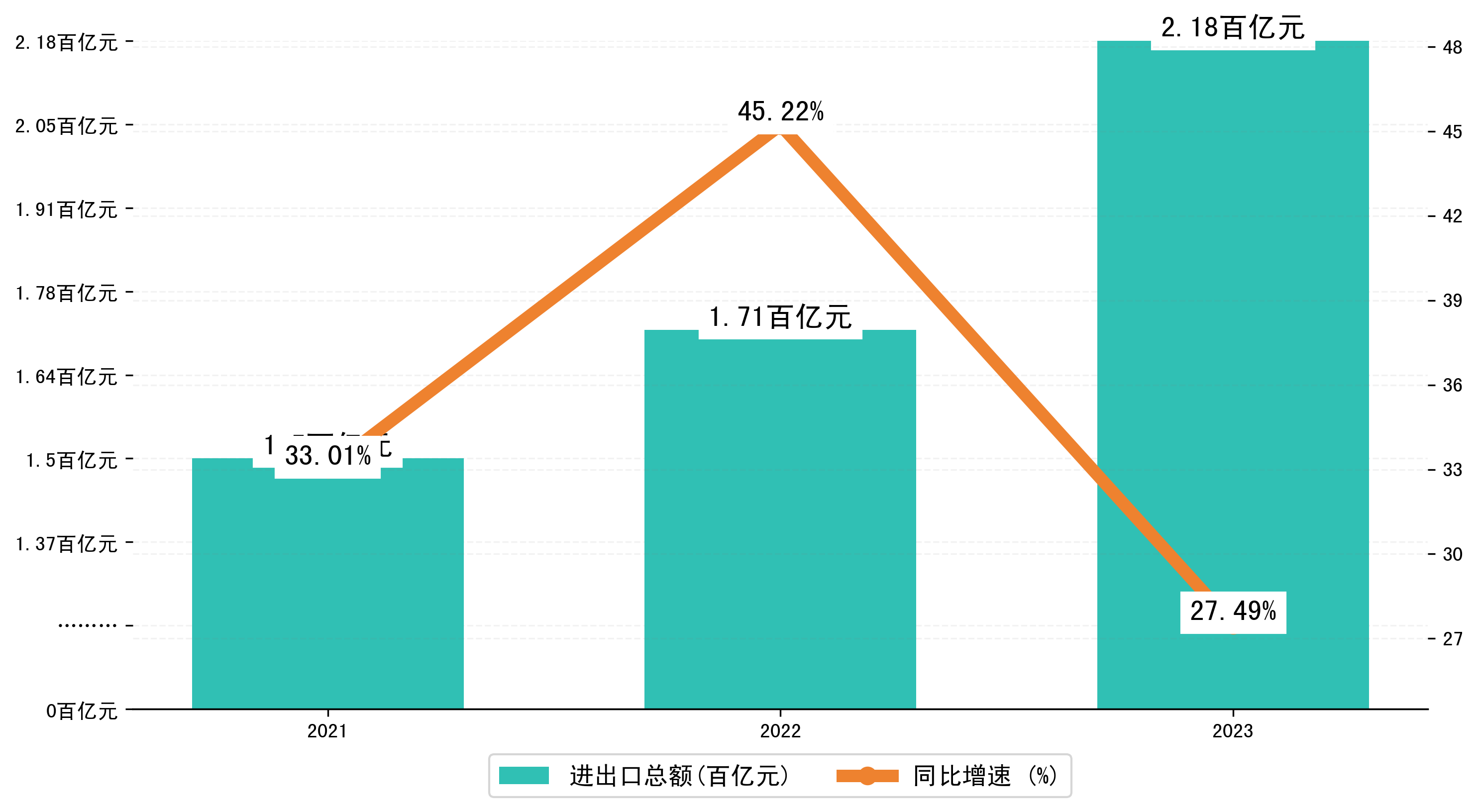 以人民币计,2023年1-3月防城港市进出口总额为218,2833.0257万元,相比上年同期增加了47,0658.0938万元,同比增加了24.10%。