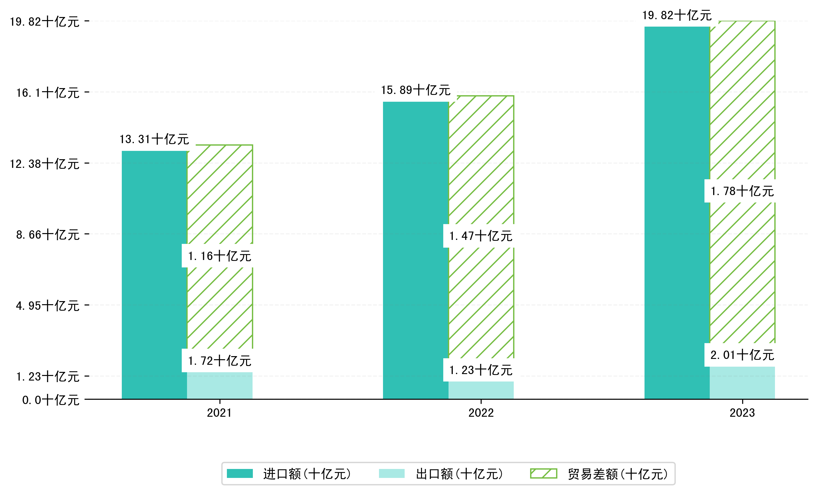 以人民币计,2023年1-3月防城港市贸易差额为178,0543,1550万元(贸易逆差),相比上年同期减少了31,4349,0823万元,同比减少21.44%。
