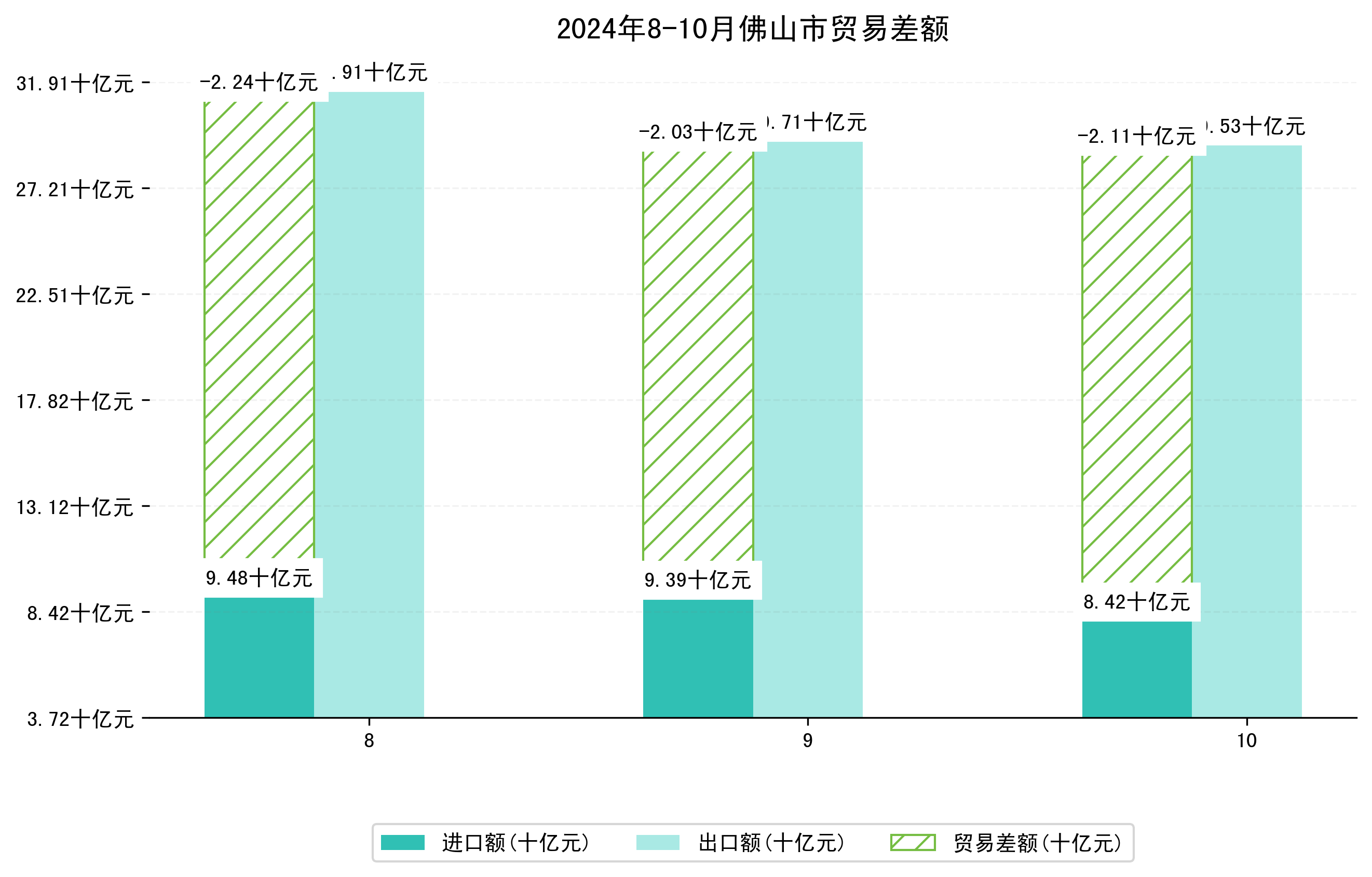 2024年10月佛山市进出口总额及进出口差额统计分析