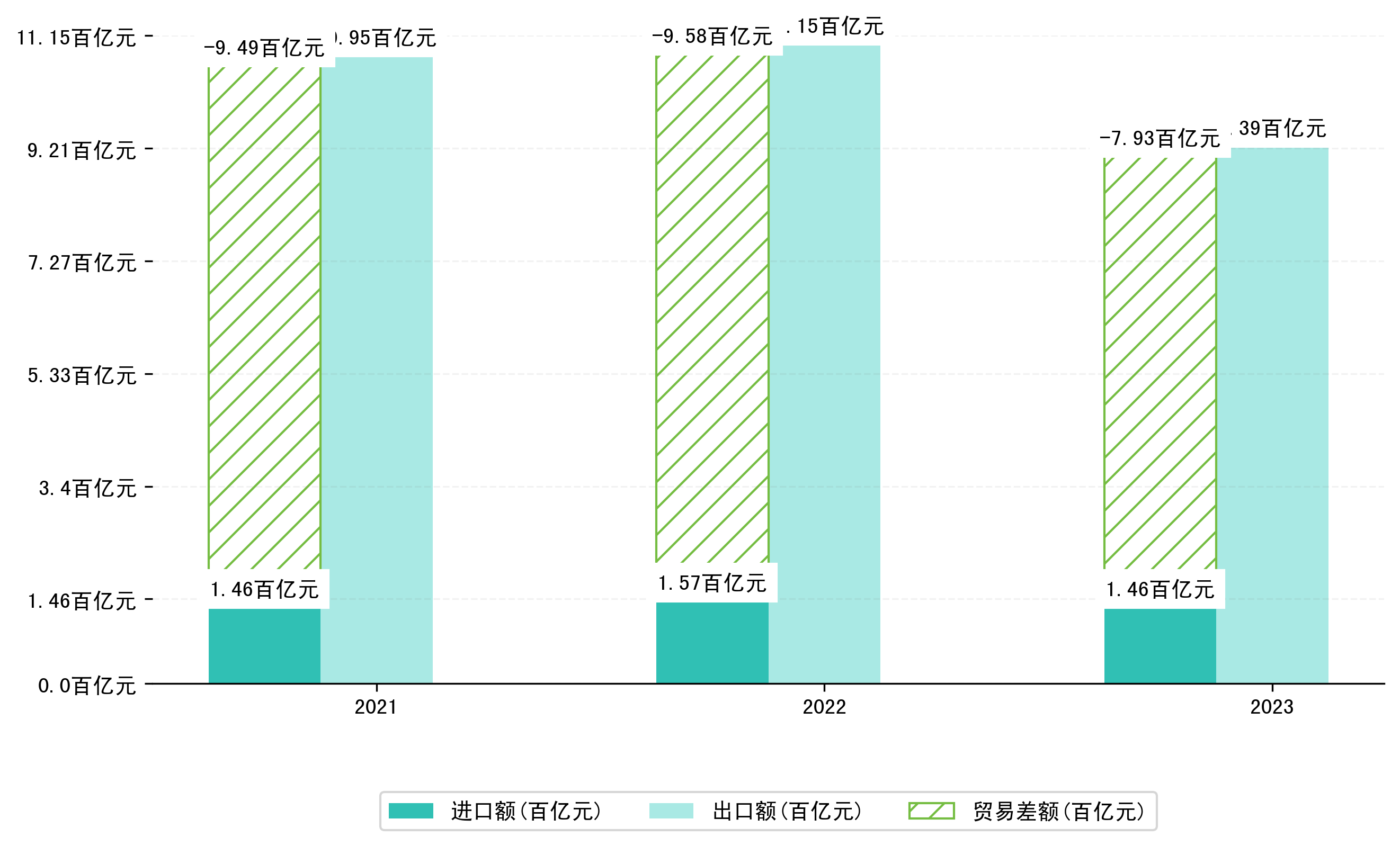 以人民币计,2023年1-2月佛山市贸易差额为793,2586,3037万元(贸易顺差),相比上年同期减少了164,3886,8872万元,同比减少-17.17%。