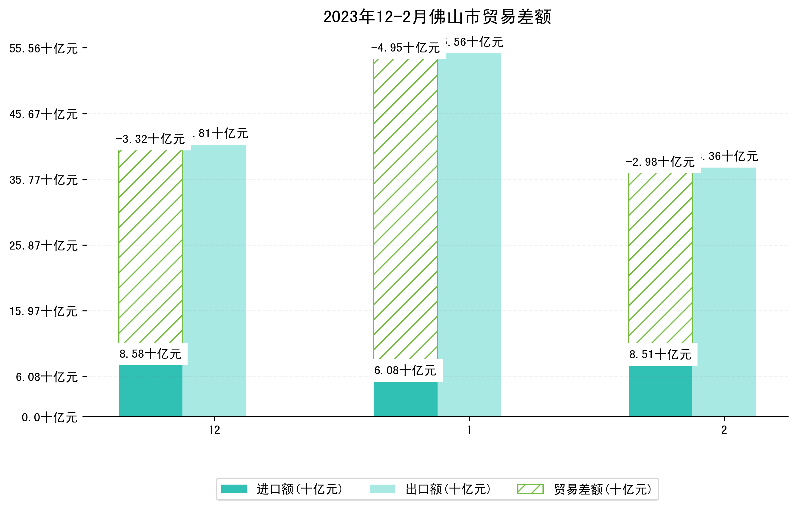 2023年2月佛山市进出口总额及进出口差额统计分析