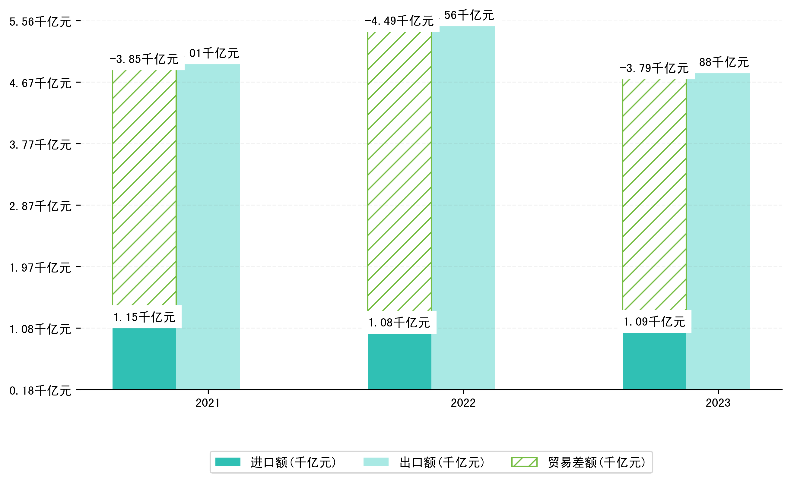 以人民币计,2023年1-12月佛山市贸易差额为3785,3527,5729万元(贸易顺差),相比上年同期减少了701,9180,6204万元,同比减少-15.64%。