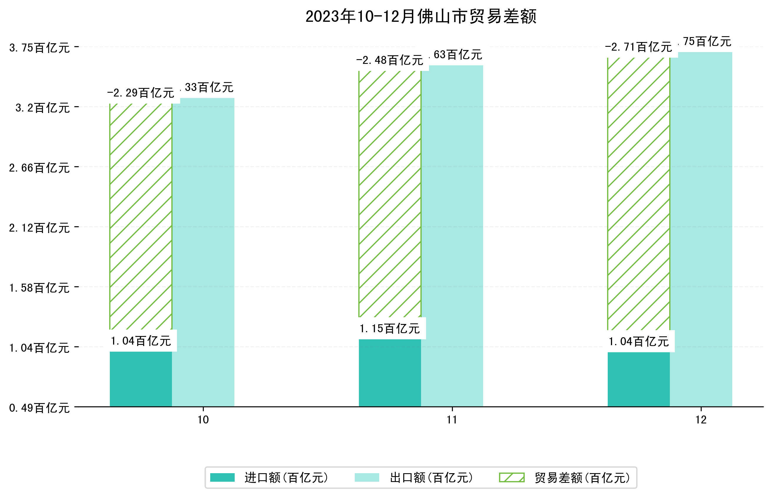 2023年12月佛山市进出口总额及进出口差额统计分析