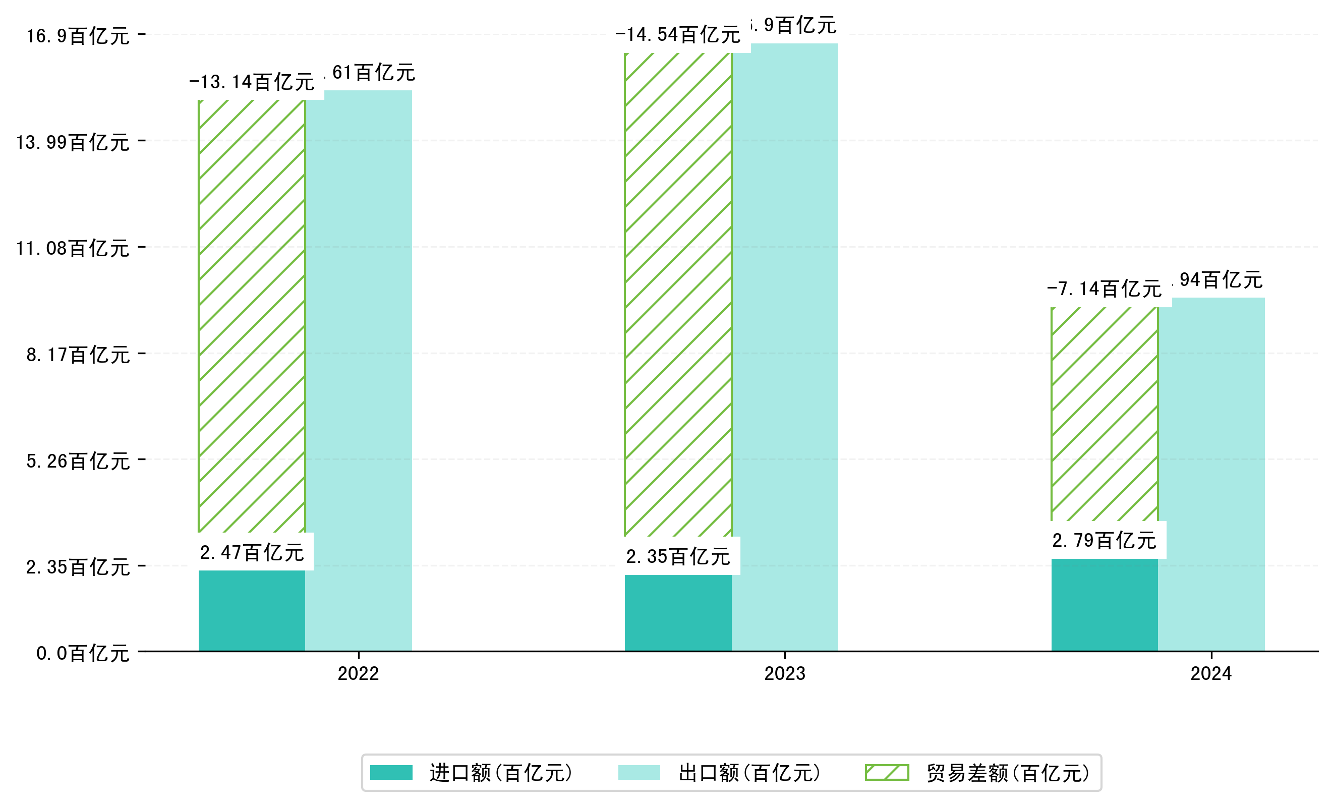 以人民币计,2024年1-3月佛山市贸易差额为714,4776,1286万元(贸易顺差),相比上年同期减少了739,9902,6239万元,同比减少-50.88%。