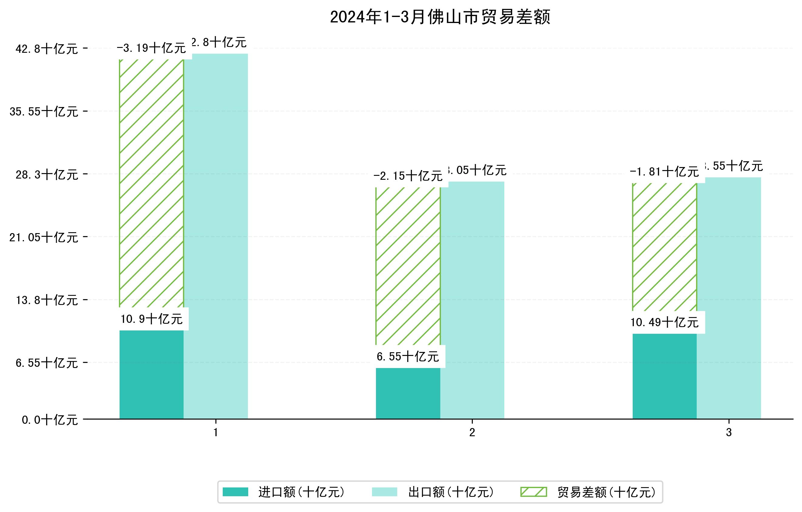 2024年3月佛山市进出口总额及进出口差额统计分析