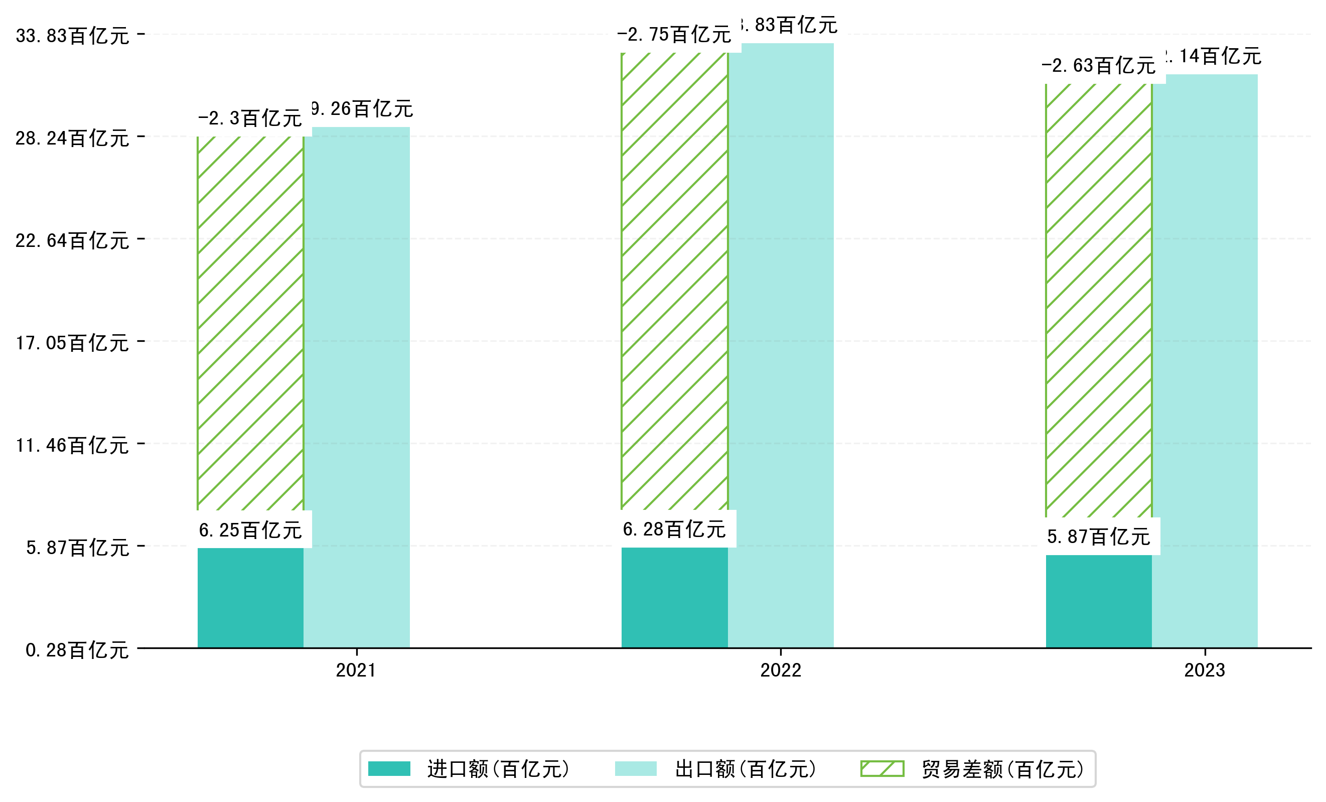以美元计,2023年7月佛山市贸易差额为33,6120,5658万美元(贸易顺差),相比上月增加了2,5197,2250万美元;相比上年同期减少了10,6505,7229万美元,同比减少-24.06%。