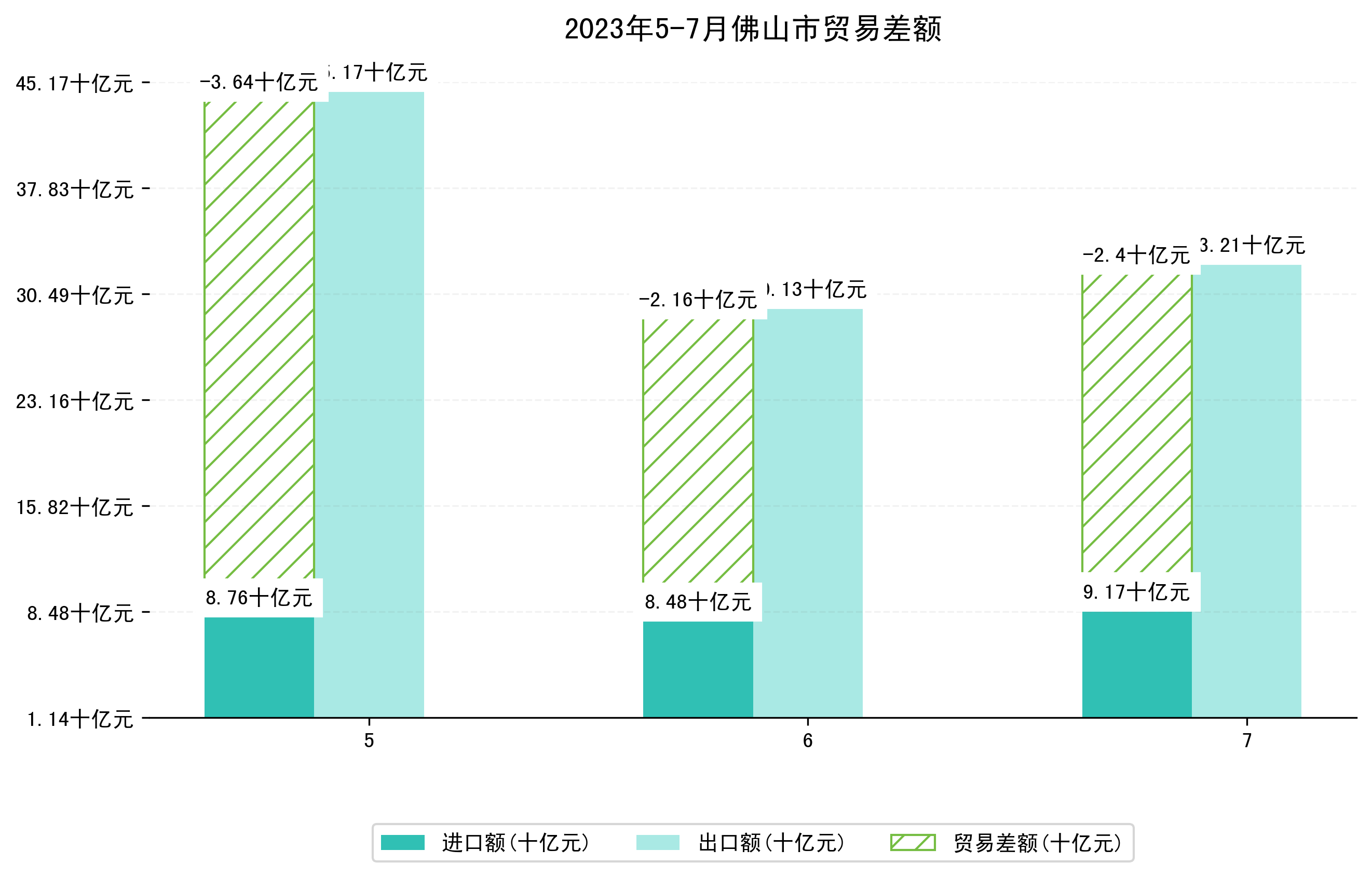 以人民币计,2023年7月佛山市贸易差额为240,3752,9562万元(贸易顺差),相比上月增加了23,9253,0451万元,即2,5197,2250万美元;相比上年同期减少了58,0690,3474万元,同比减少-19.46%。