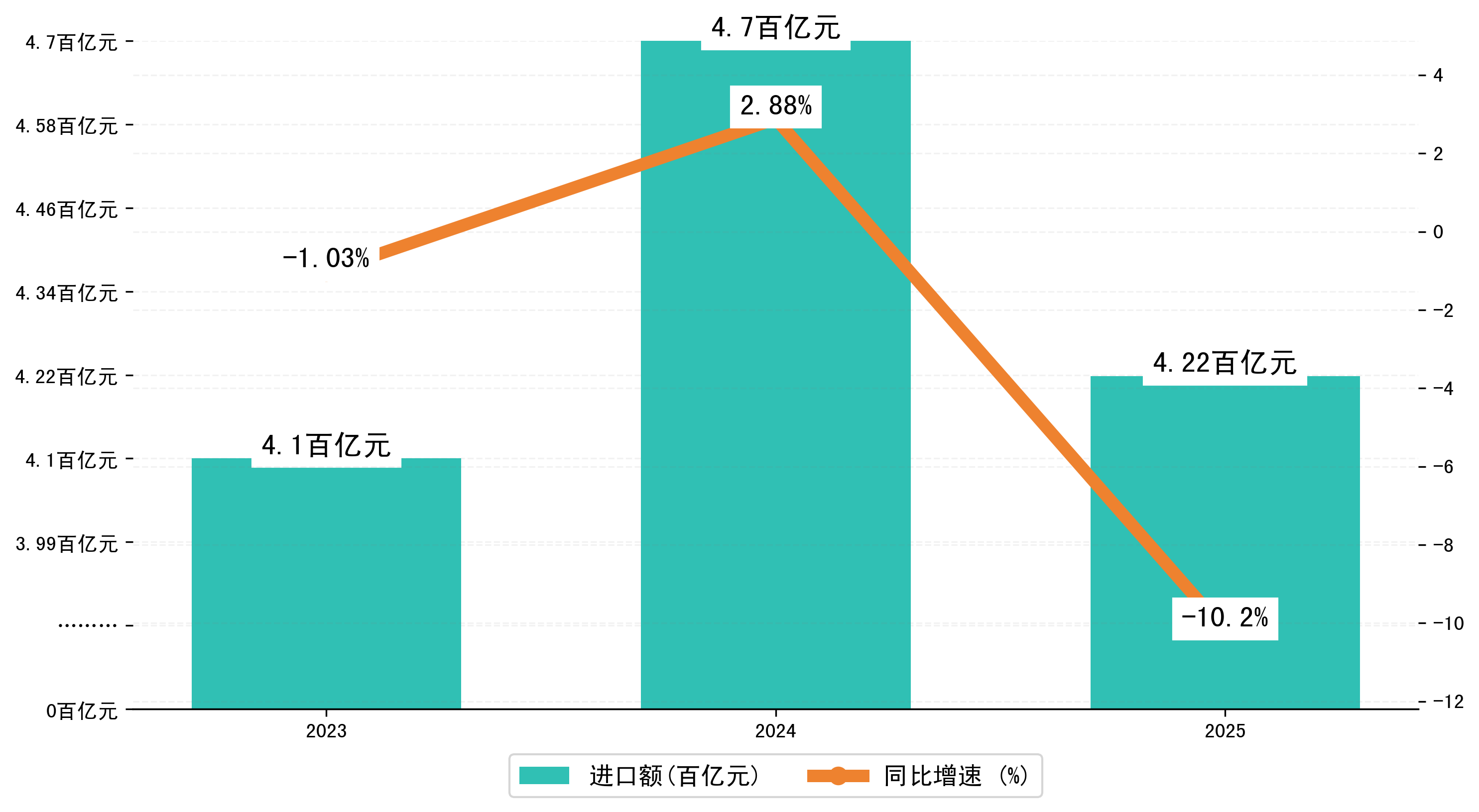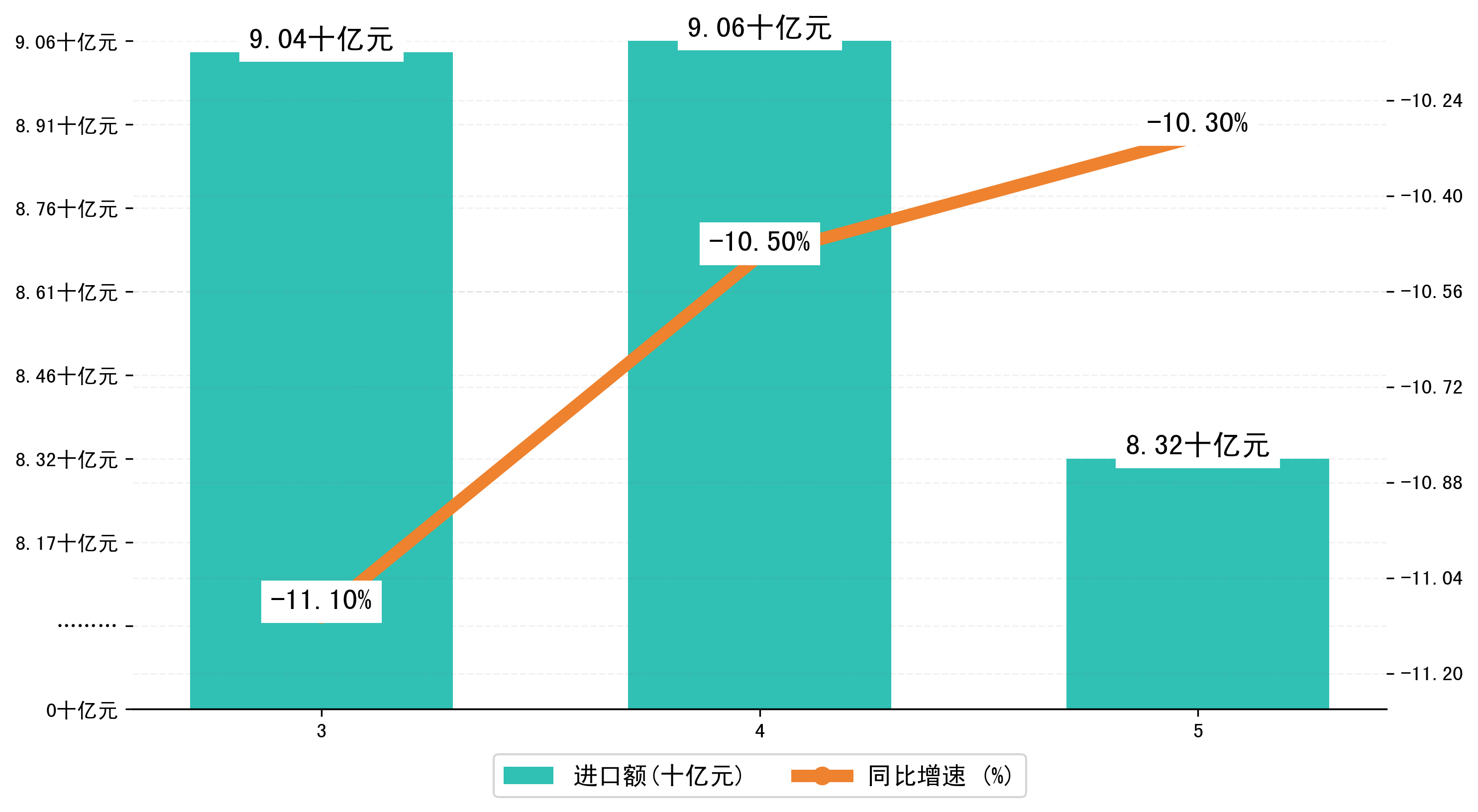 以人民币计,2025年1-5月佛山市进口额为422,2679.7219万元,相比上年同期减少了47,9709.5838万元,同比减少了-10.30%。