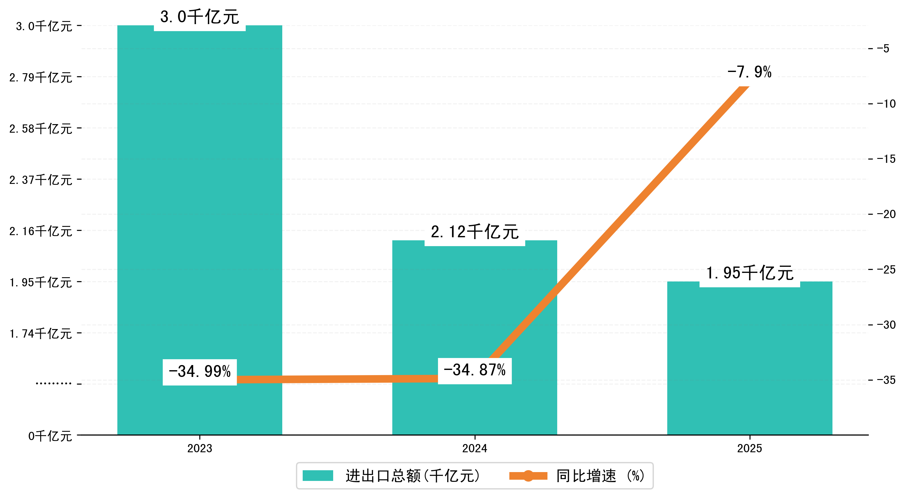 以美元计,2025年1-5月佛山市进出口总额为271,7031.7862万美元,相比上年同期减少了26,7080.8069万美元,同比减少-10.70%。