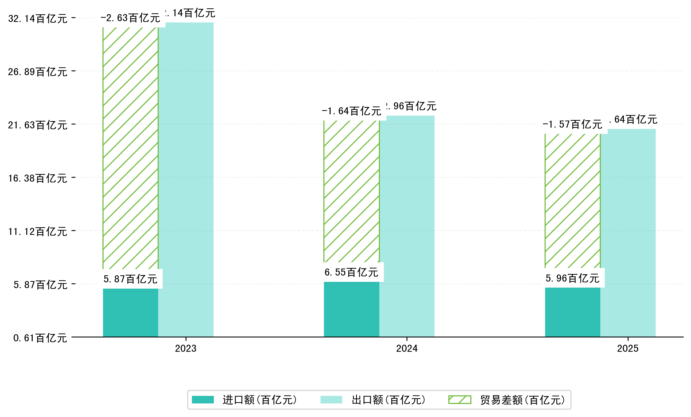以人民币计,2025年7月佛山市贸易差额为236,5157,9634万元(贸易顺差),相比上月增加了12,5051,6979万元,即1,8434,3746万美元;相比上年同期增加了13,2757,6157万元,同比增加5.95%。