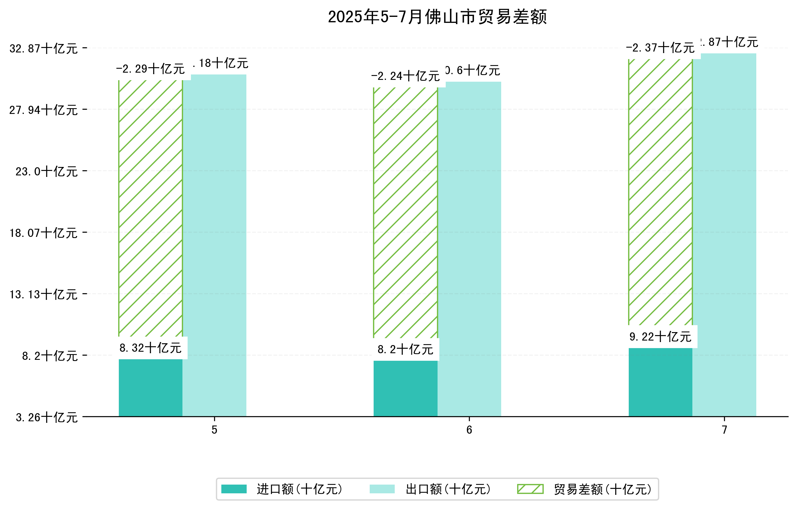 2025年7月佛山市进出口总额及进出口差额统计分析