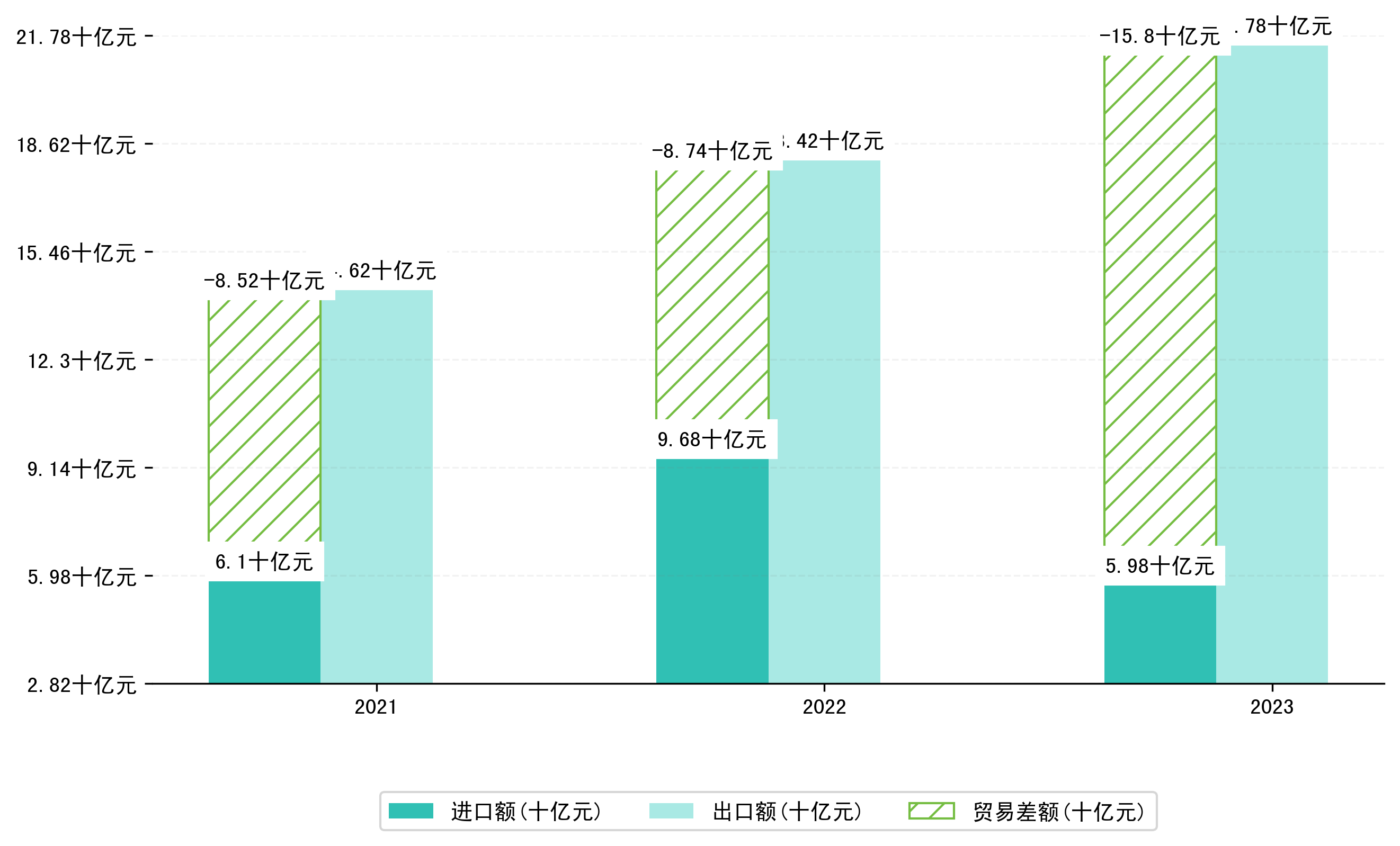 以人民币计,2023年1月福州市贸易差额为157,9599,8241万元(贸易顺差),相比上月增加了59,6964,8170万元,即8,7826,6098万美元;相比上年同期增加了70,5819,7492万元,同比增加80.78%。