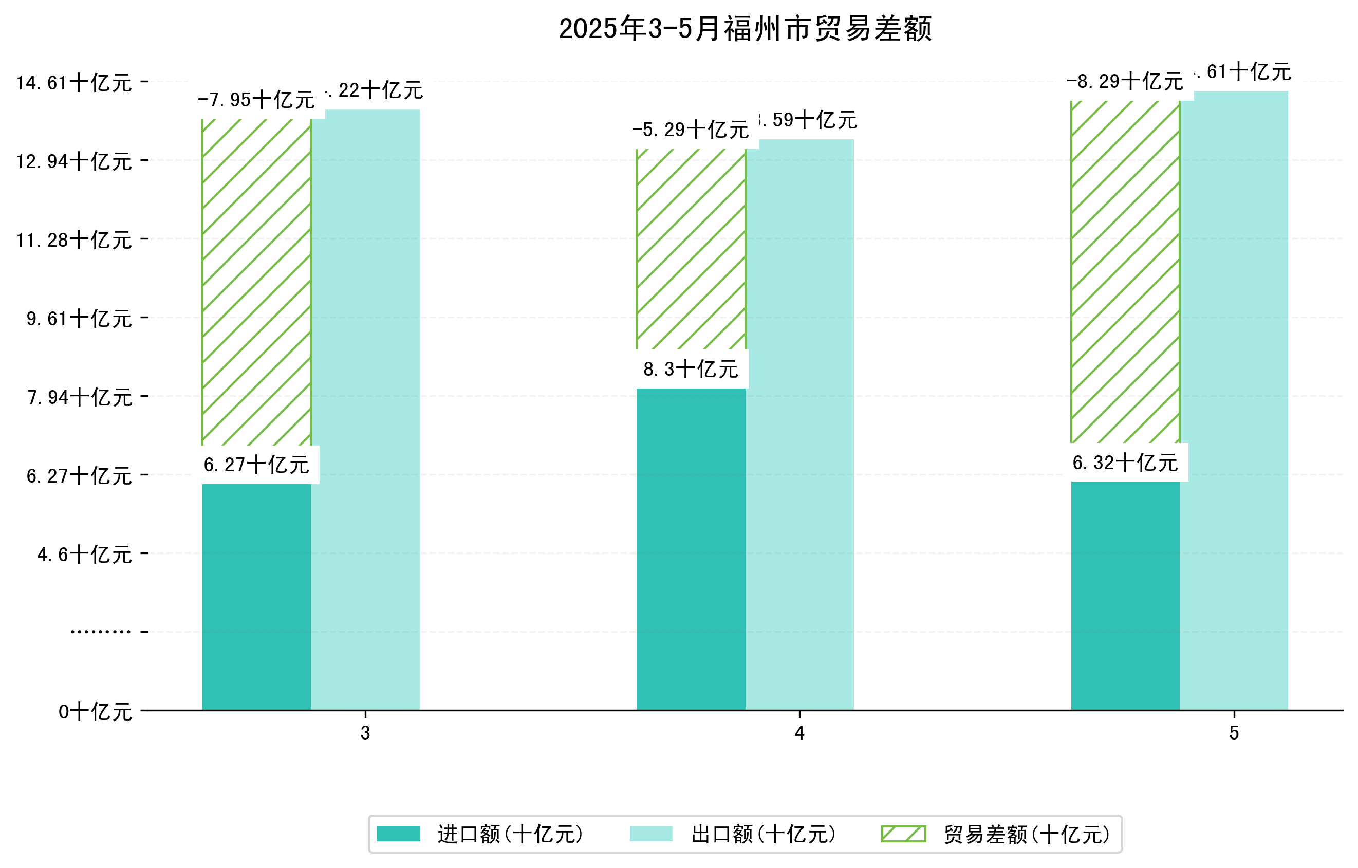 一、2025年5月福州市单月出口总额及进出口差额统计分析