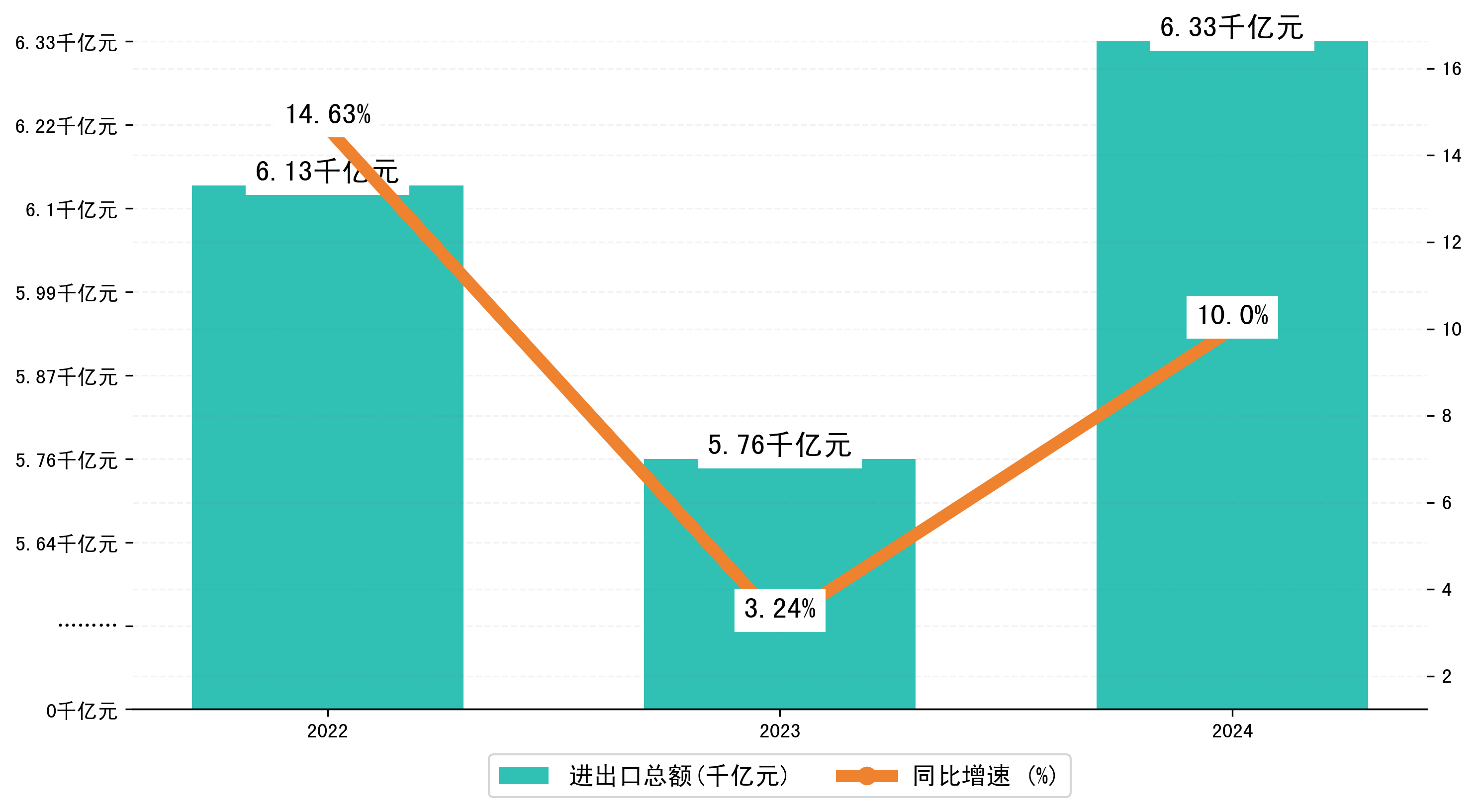 以美元计,2024年1-10月无锡市进出口总额为890,9318.389万美元,相比上年同期增加了69,1659.8162万美元,同比增加8.40%。