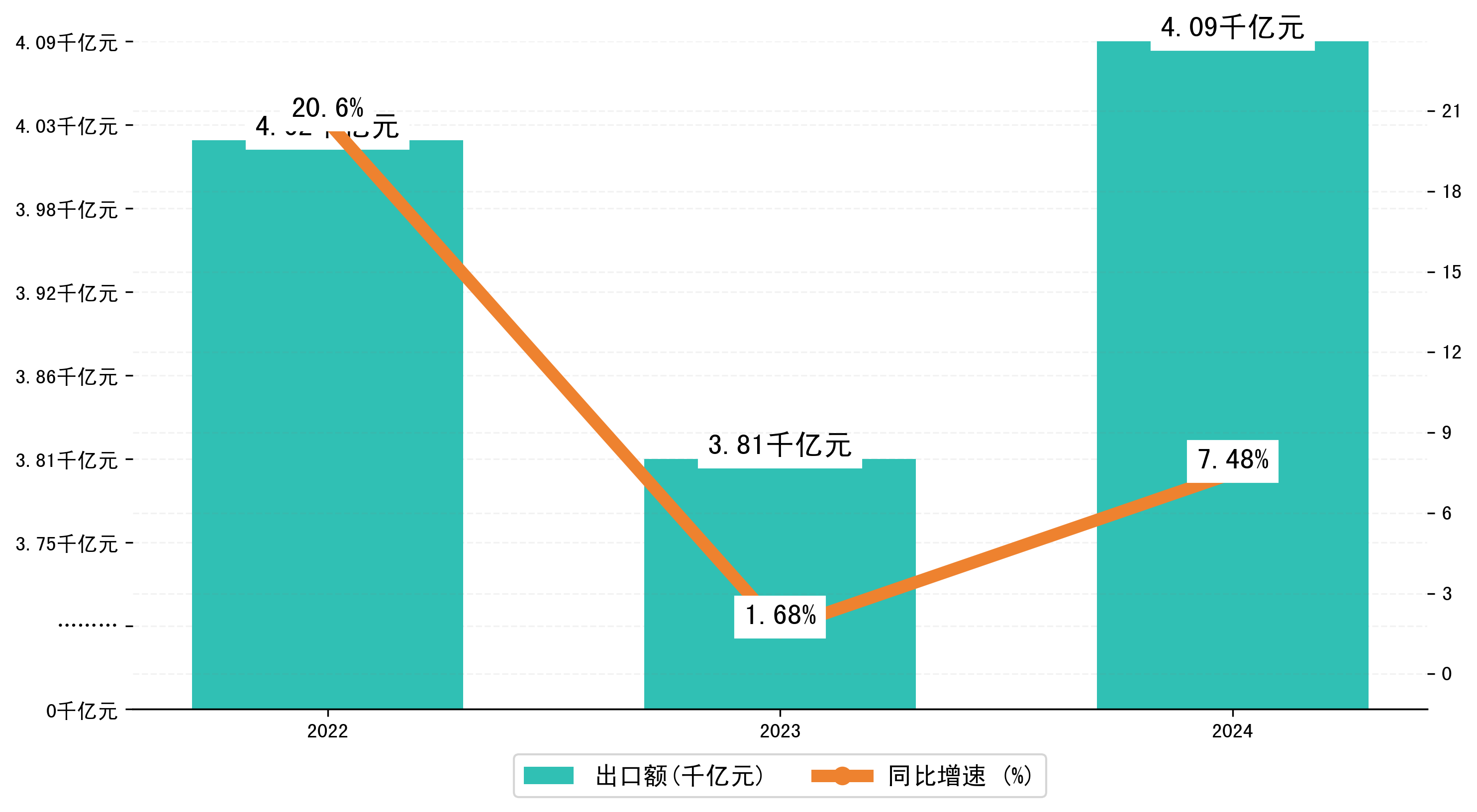 以人民币计,2024年1-10月无锡市出口额为4091,6882.9221万元,相比上年同期增加了284,9328.6944万元,同比增加了7.50%。