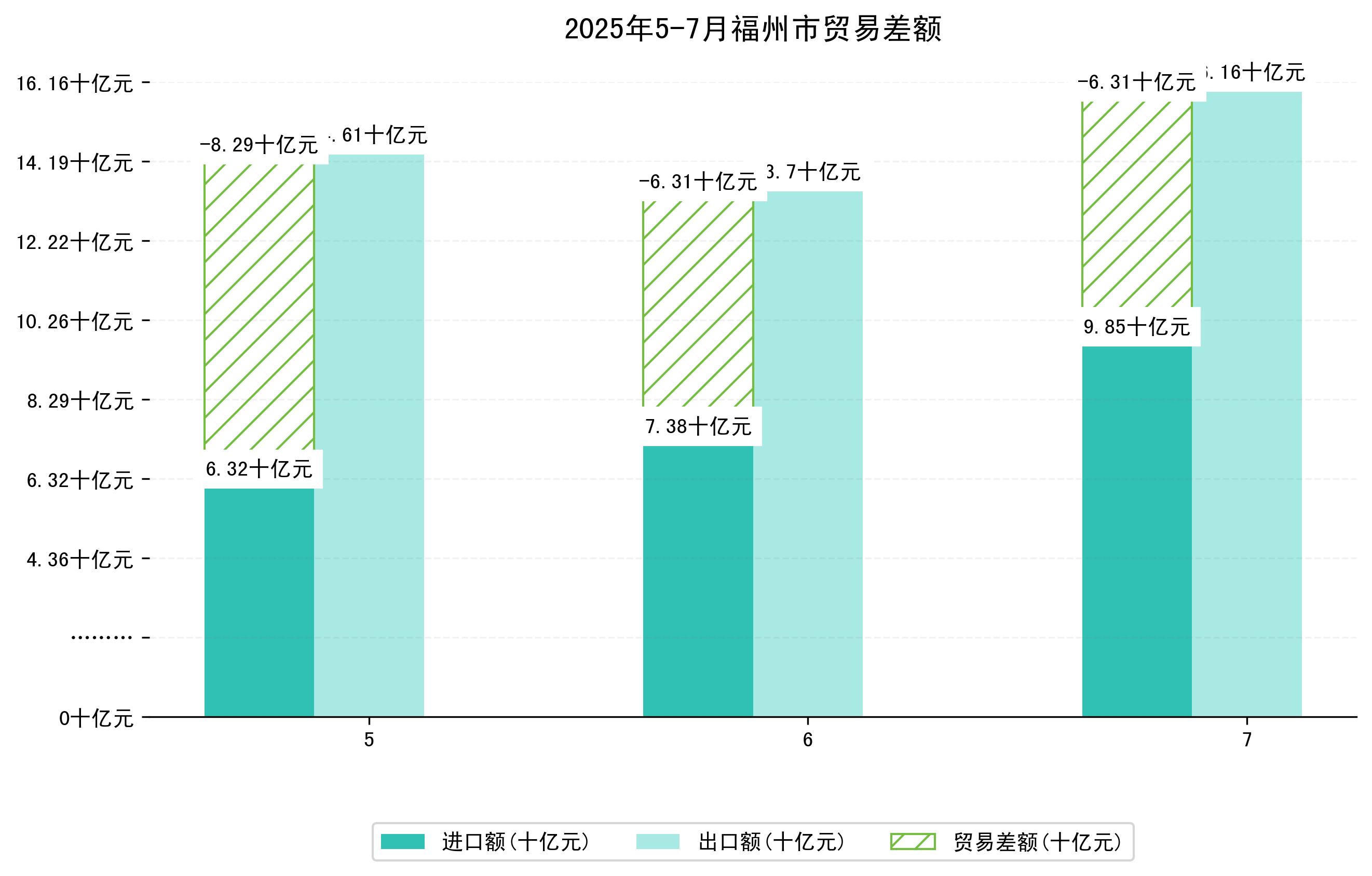 一、2025年7月福州市单月出口总额及进出口差额统计分析