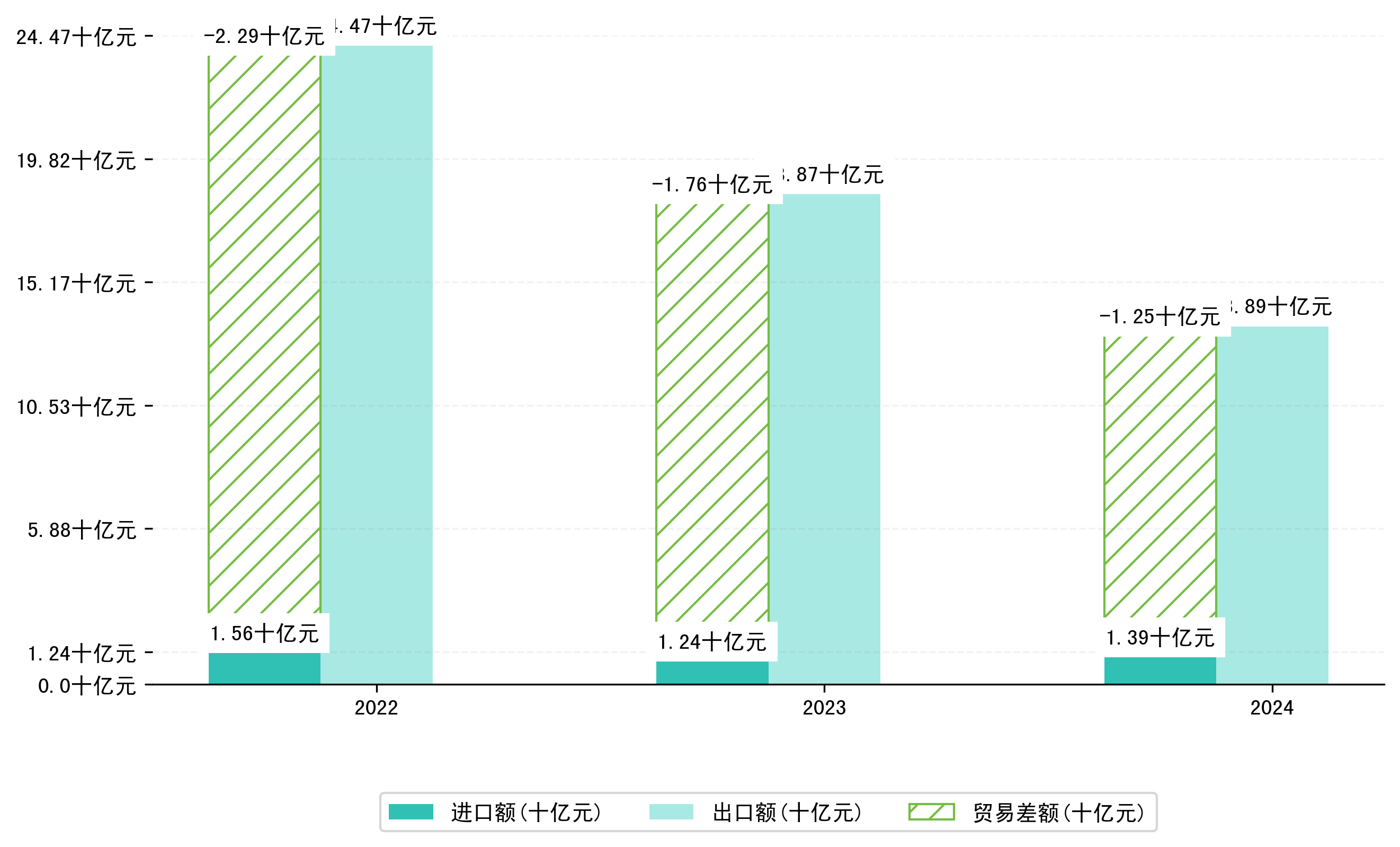 以美元计,2024年1-10月抚州市贸易差额为17,5856,8552万美元(贸易顺差),相比上年同期减少了7,5756,2194万美元,同比减少-30.11%。