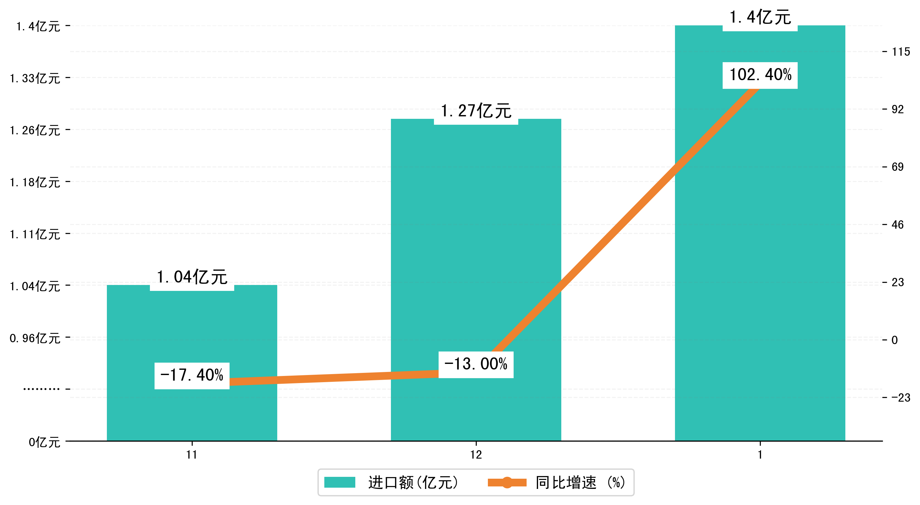 以人民币计,2024年1-1月抚州市进口额为1,4020.2631万元,相比上年同期增加了7094.7355万元,同比增加了102.40%。