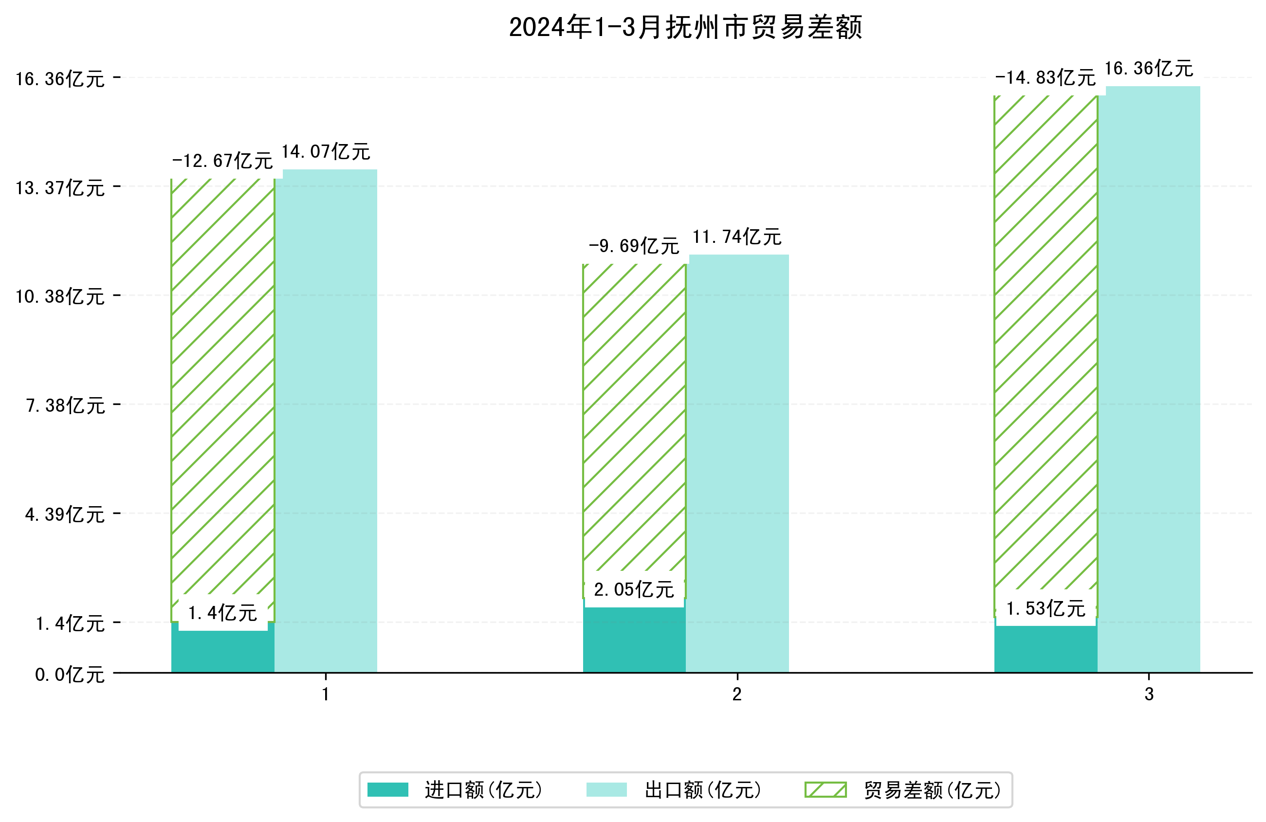2024年3月抚州市进出口总额及进出口差额统计分析