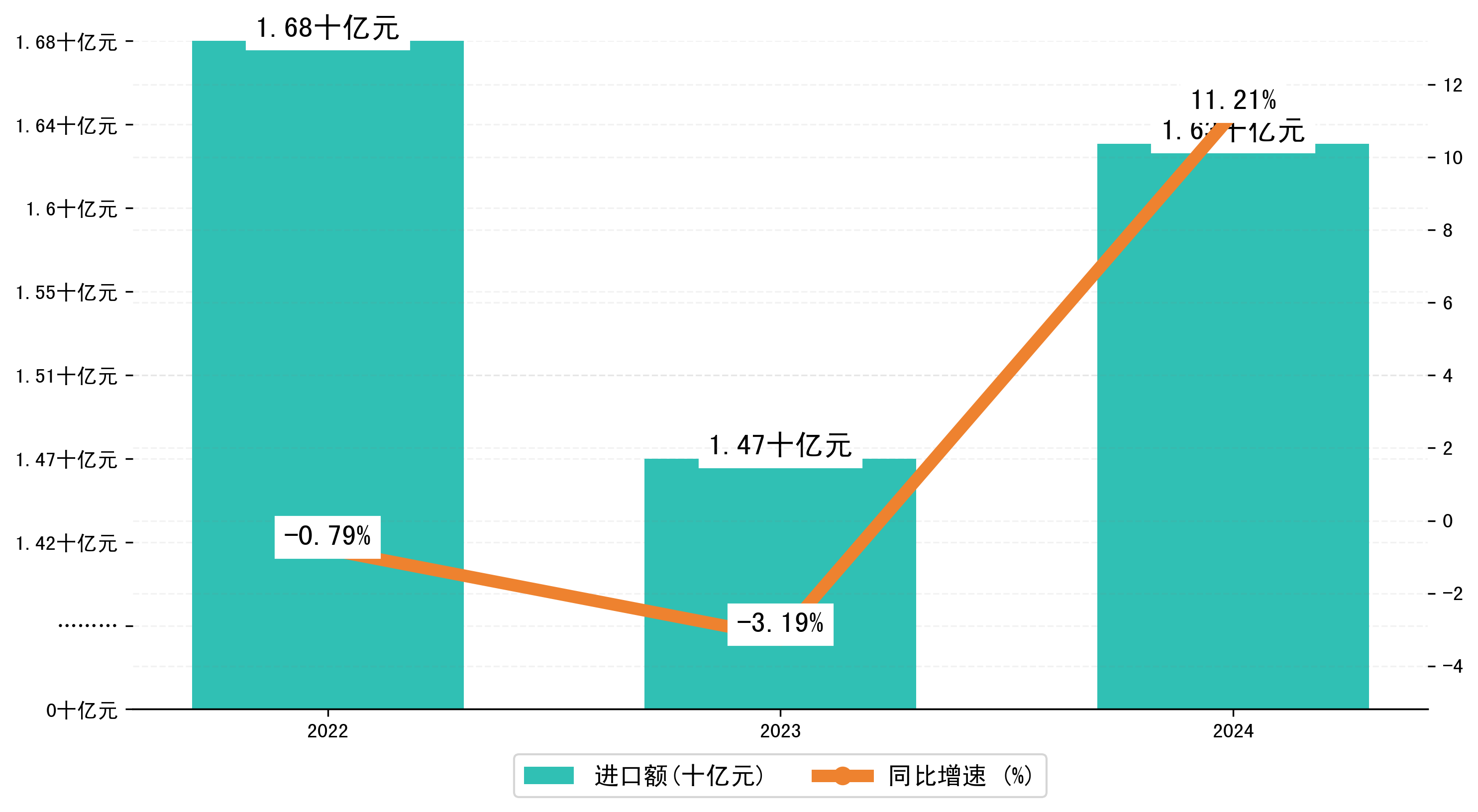 以人民币计,2024年1-12月抚州市进口额为16,2988.8353万元,相比上年同期增加了1,6434.6368万元,同比增加了10.40%。