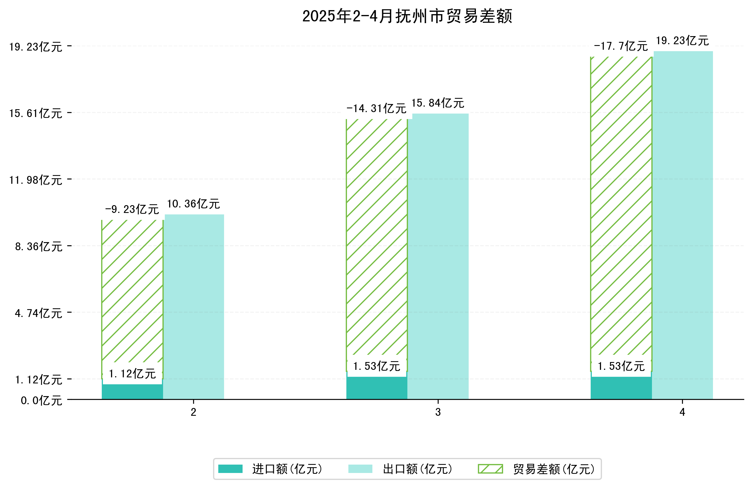 2025年4月抚州市进出口总额及进出口差额统计分析