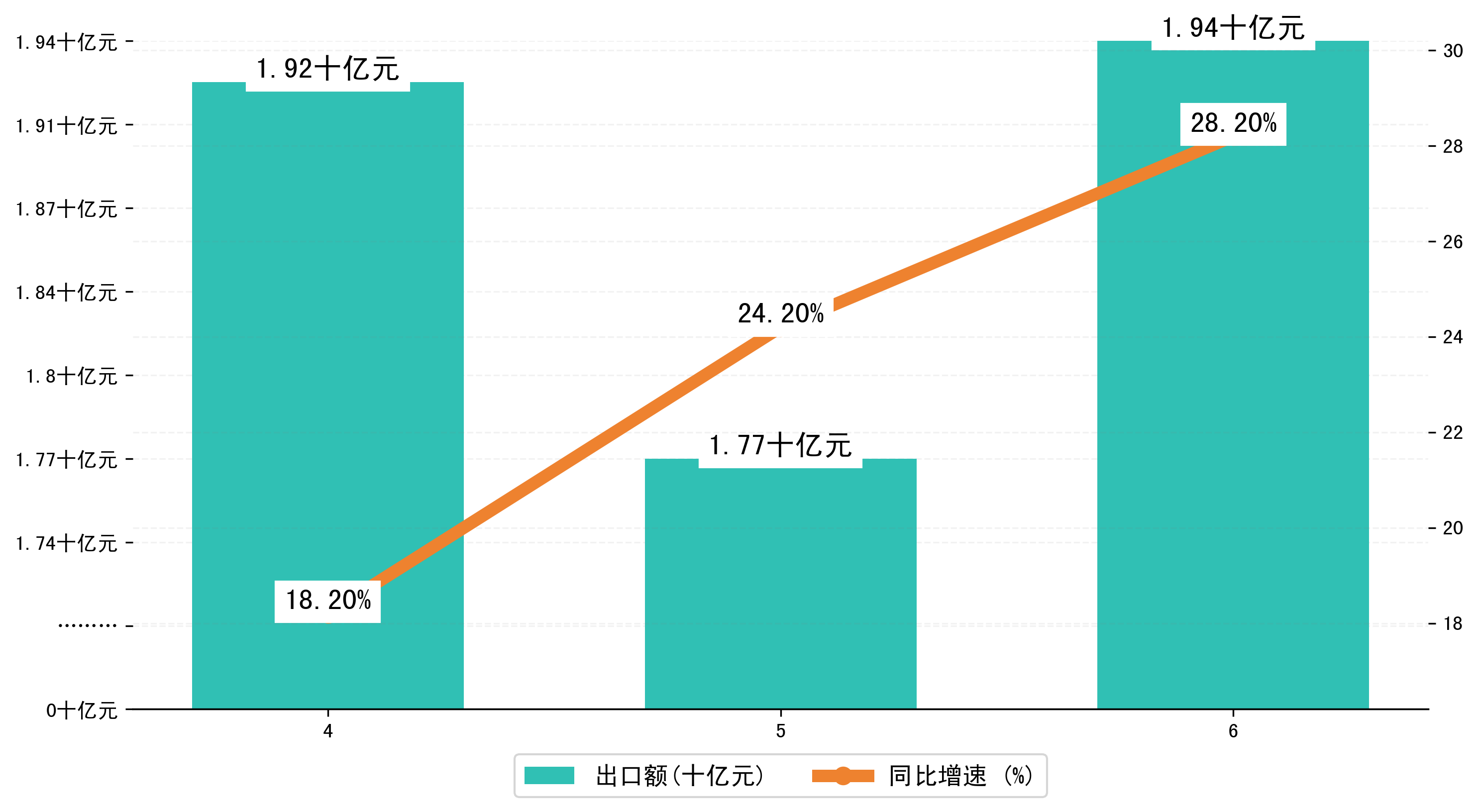 以人民币计,2025年1-6月抚州市出口额为102,0564.2426万元,相比上年同期增加了22,4647.8069万元,同比增加了28.20%。