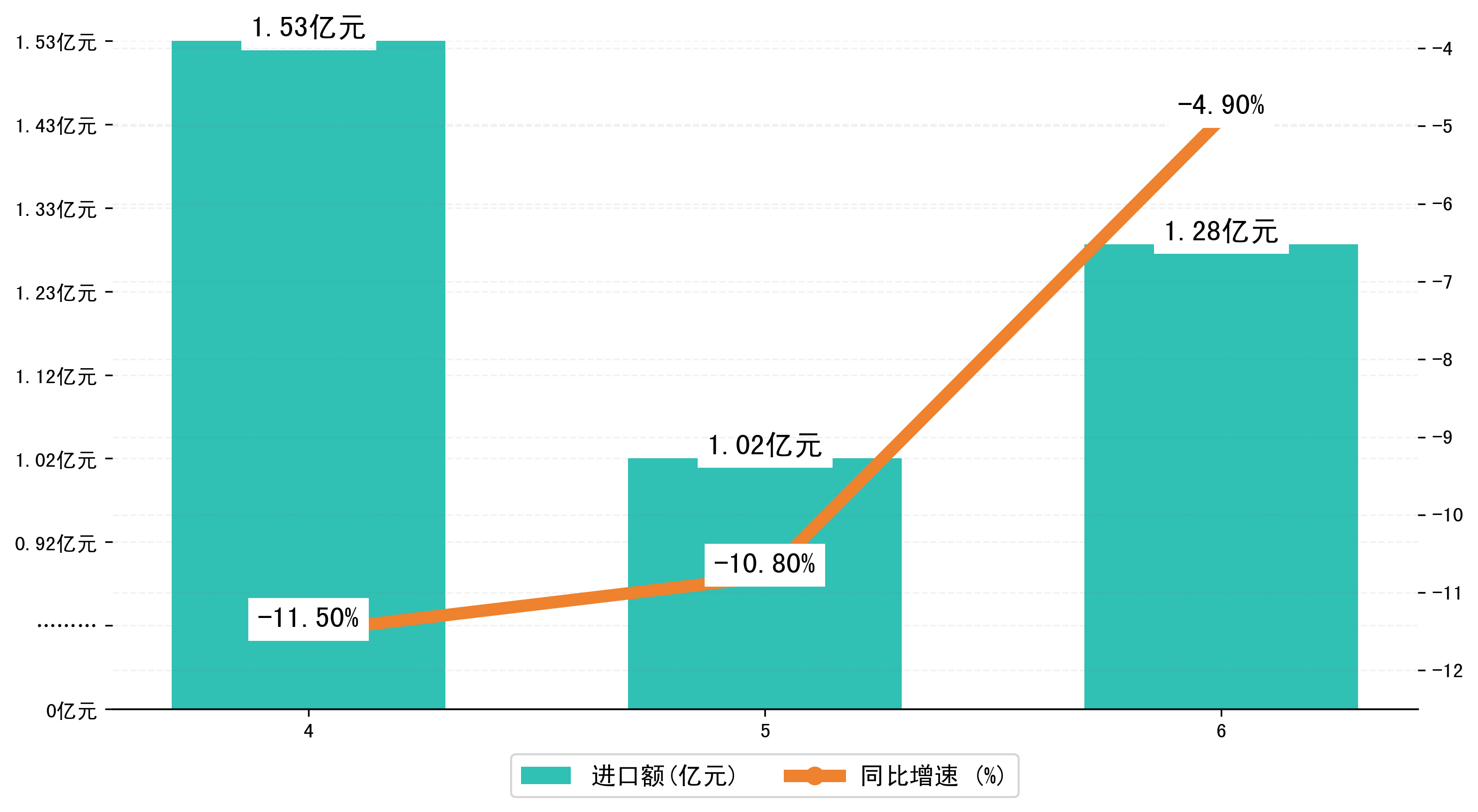 以人民币计,2025年1-6月抚州市进口额为8,8181.9562万元,相比上年同期减少了4566.3866万元,同比减少了-4.90%。