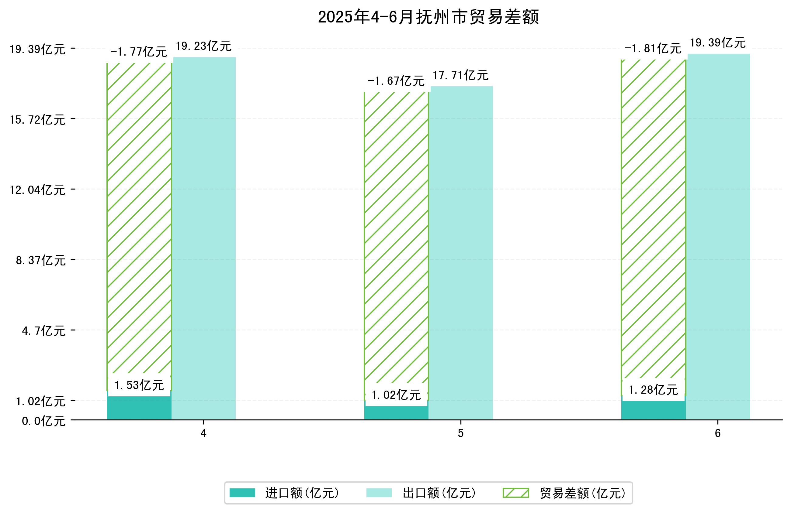 2025年6月抚州市进出口总额及进出口差额统计分析